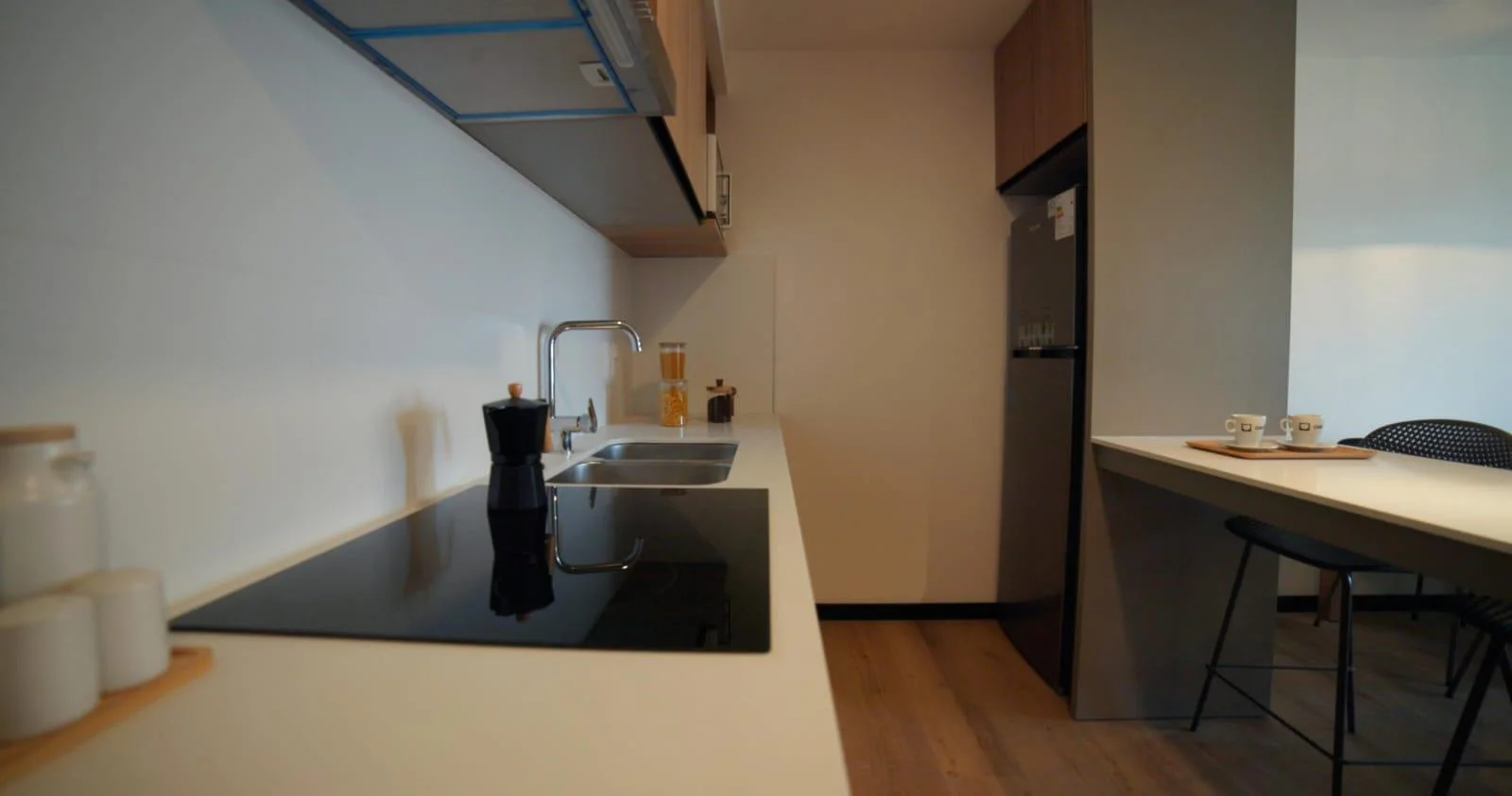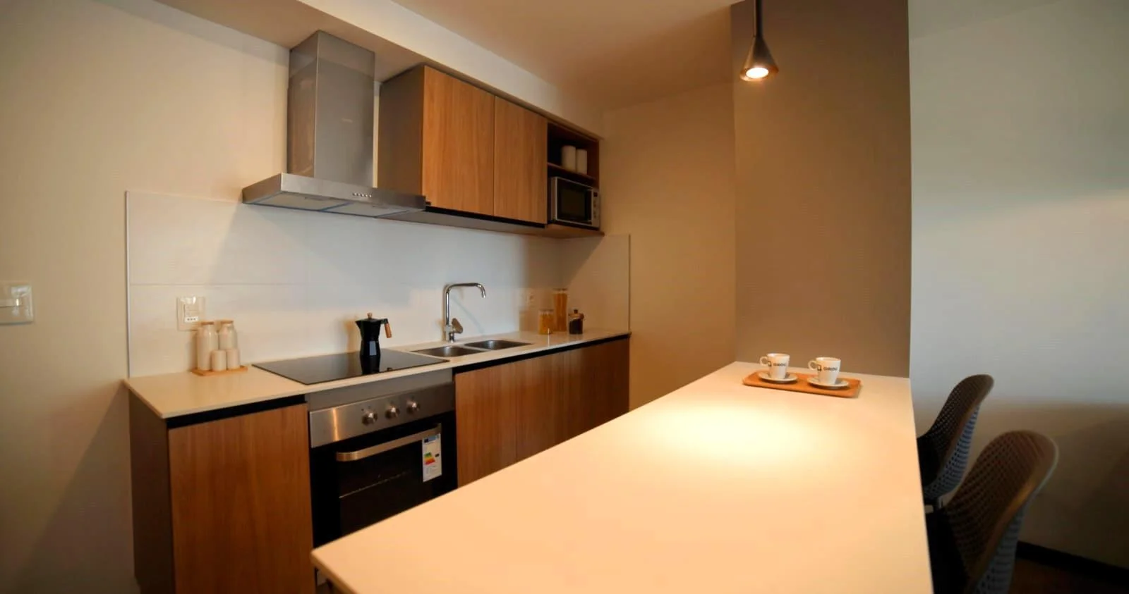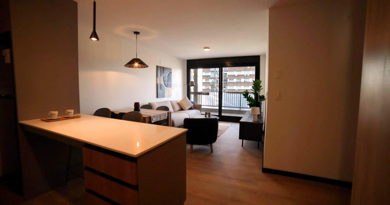 Al ingresar al apartamento nos recibe con un living comedor con cocina integrada. Cuenta con 2 dormitorios, una cómoda terraza, y 1 baño completo.