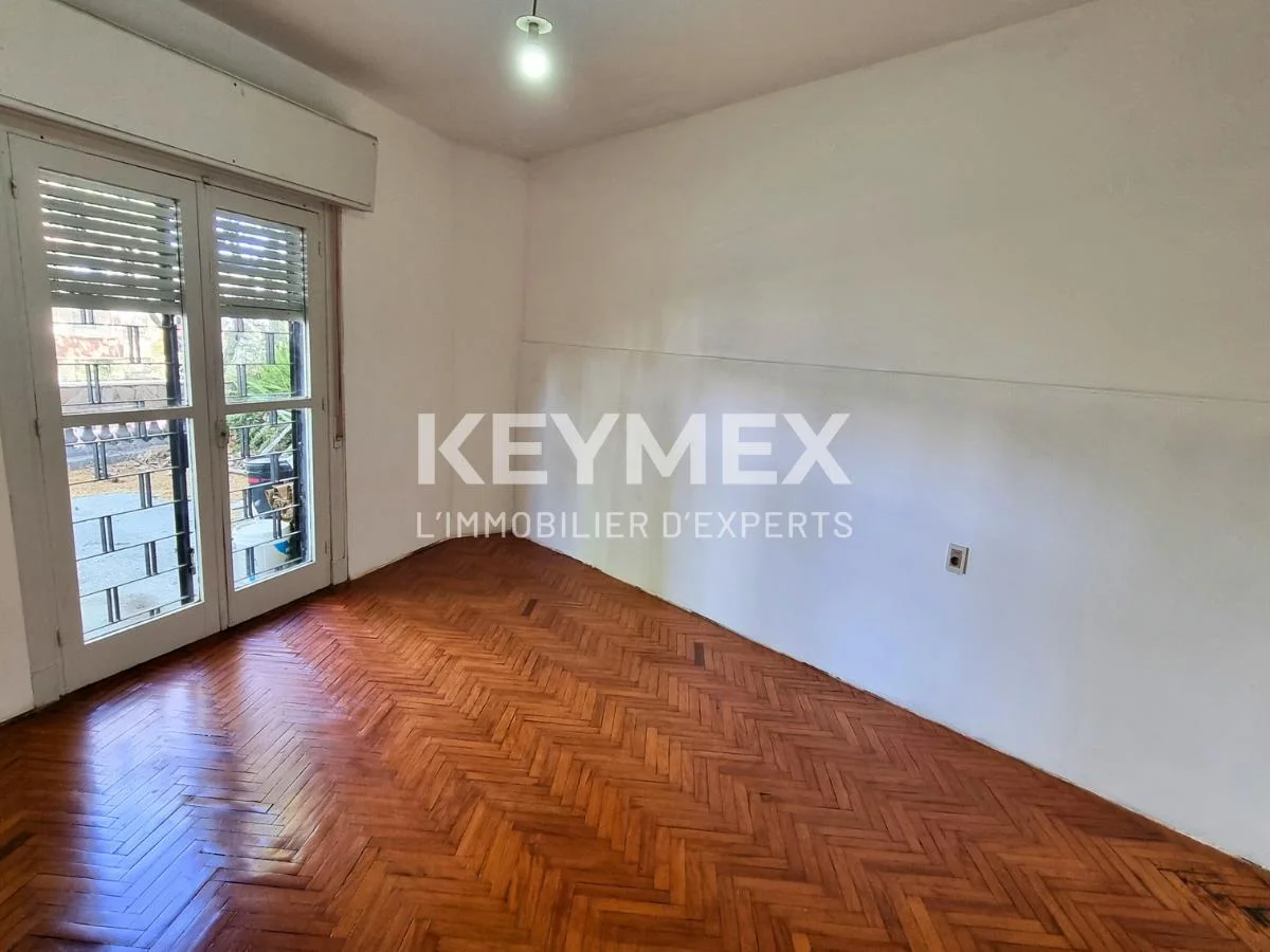 3 dormitorios con piso de parquet, aberturas de madera y persianas de madera y rejas.