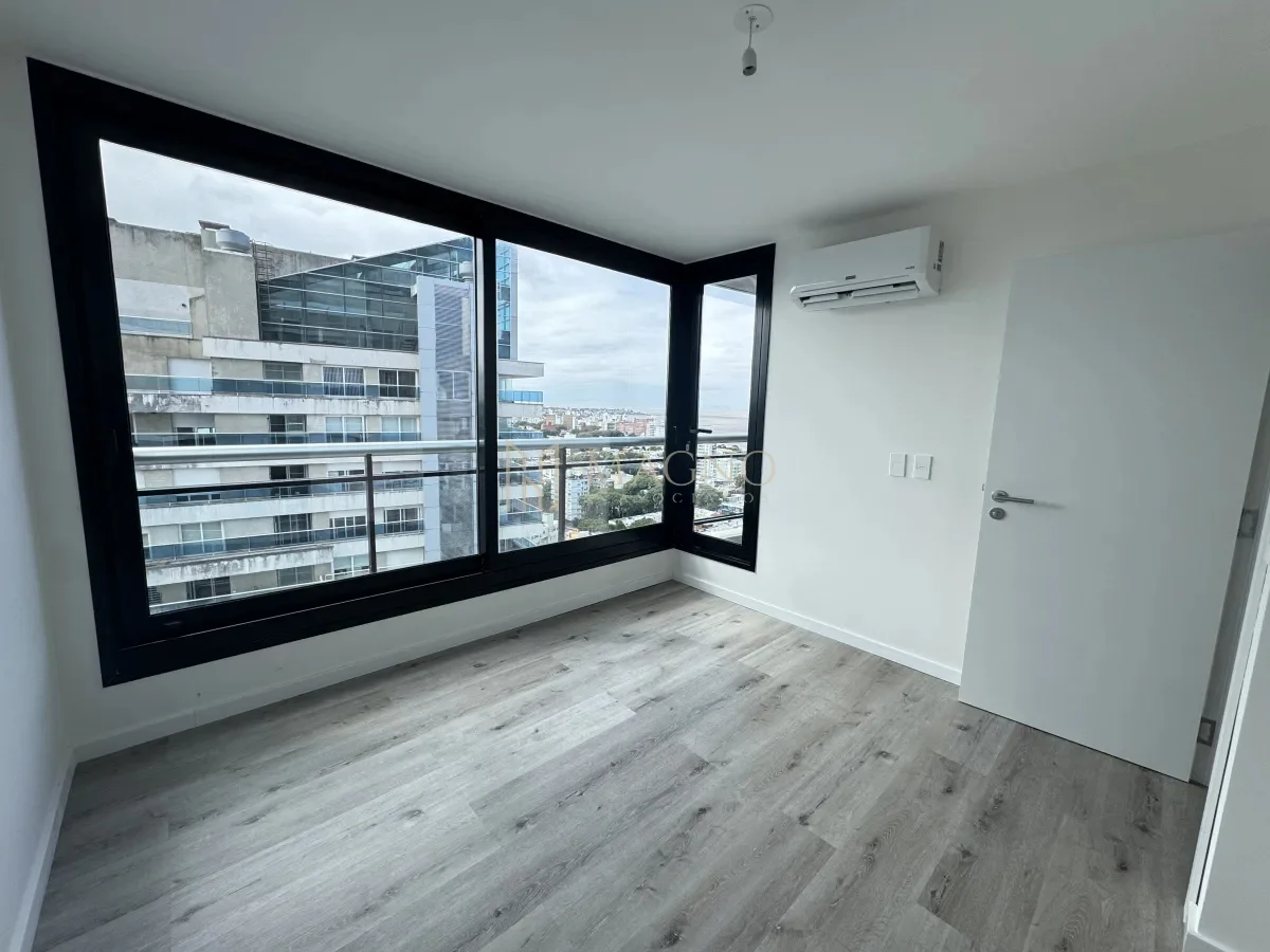 El apartamento cuenta con living comedor con ventanales hacia gran vista, cocina integrada con barra desayunadora, horno, anafe y campana, 2 dormitorios, el principal en suite, ambos con placard y aire acondicionado.