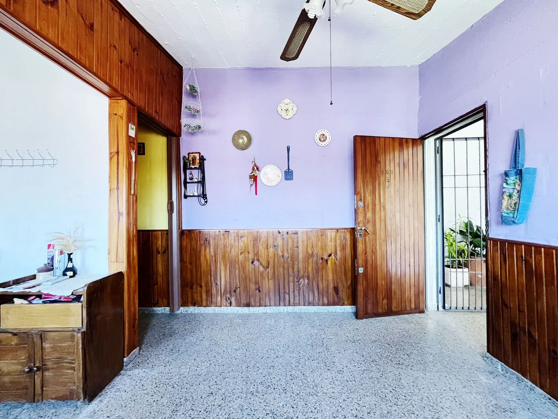 Al ingresar al apartamento, se accede a un living-comedor (3,20 x 2,80 m) con revestimientos en madera que aportan calidez y estilo. La cocina integrada al espacio principal cuenta con muebles aéreos y bajo mesada, ofreciendo máxima funcionalidad. Desde la cocina se accede a una terraza lavadero cerrada (0,95 x 2,77 m).