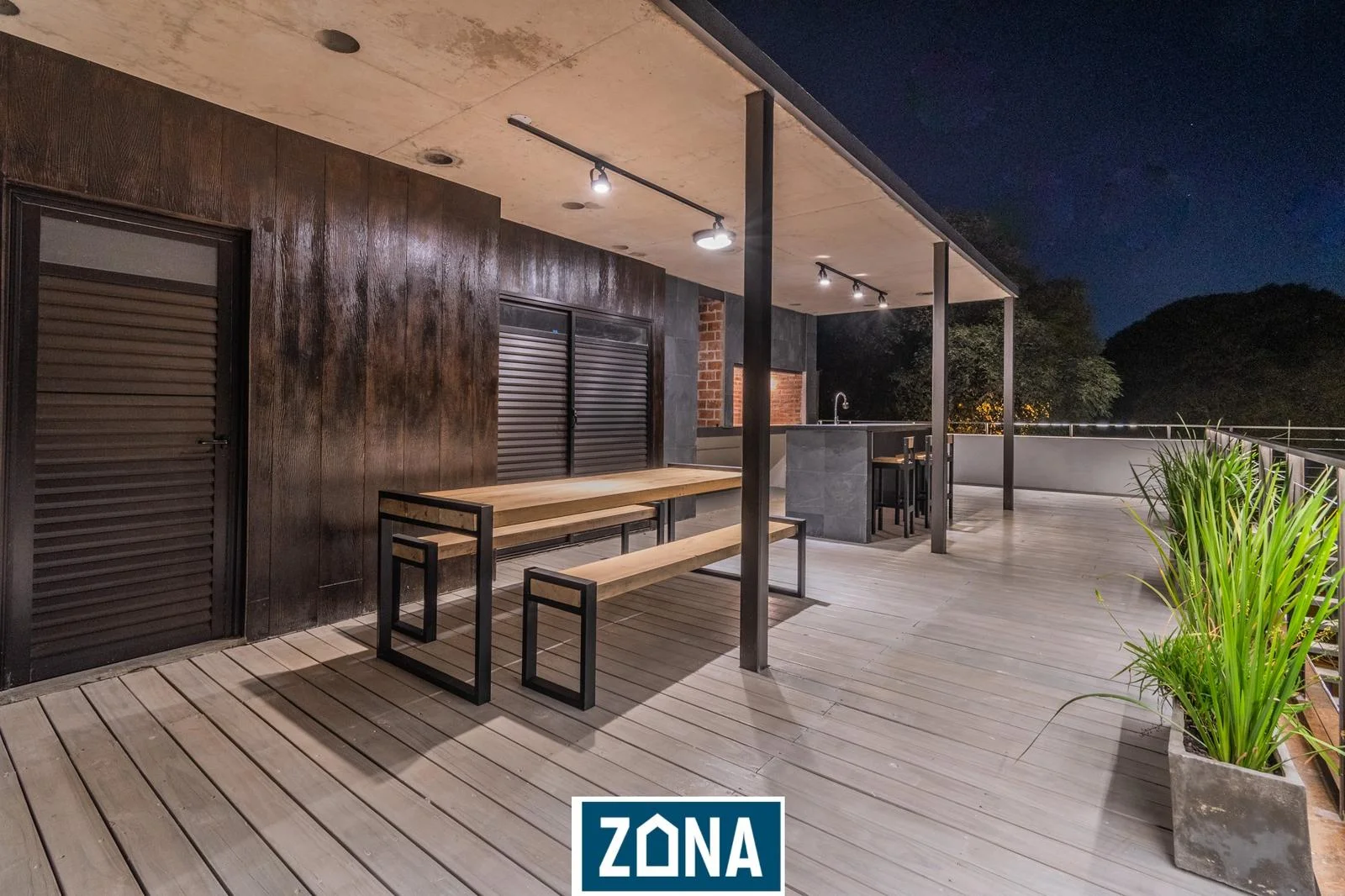 El complejo cuenta con barbacoa en el segundo piso, lavadero y tender.