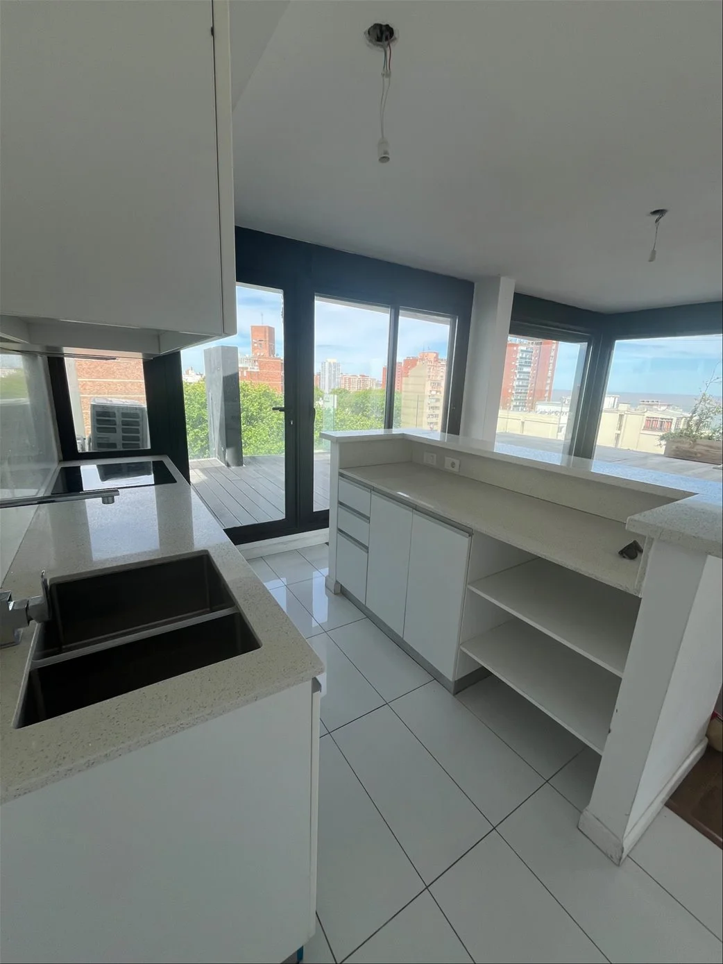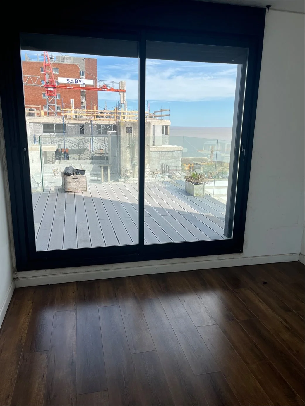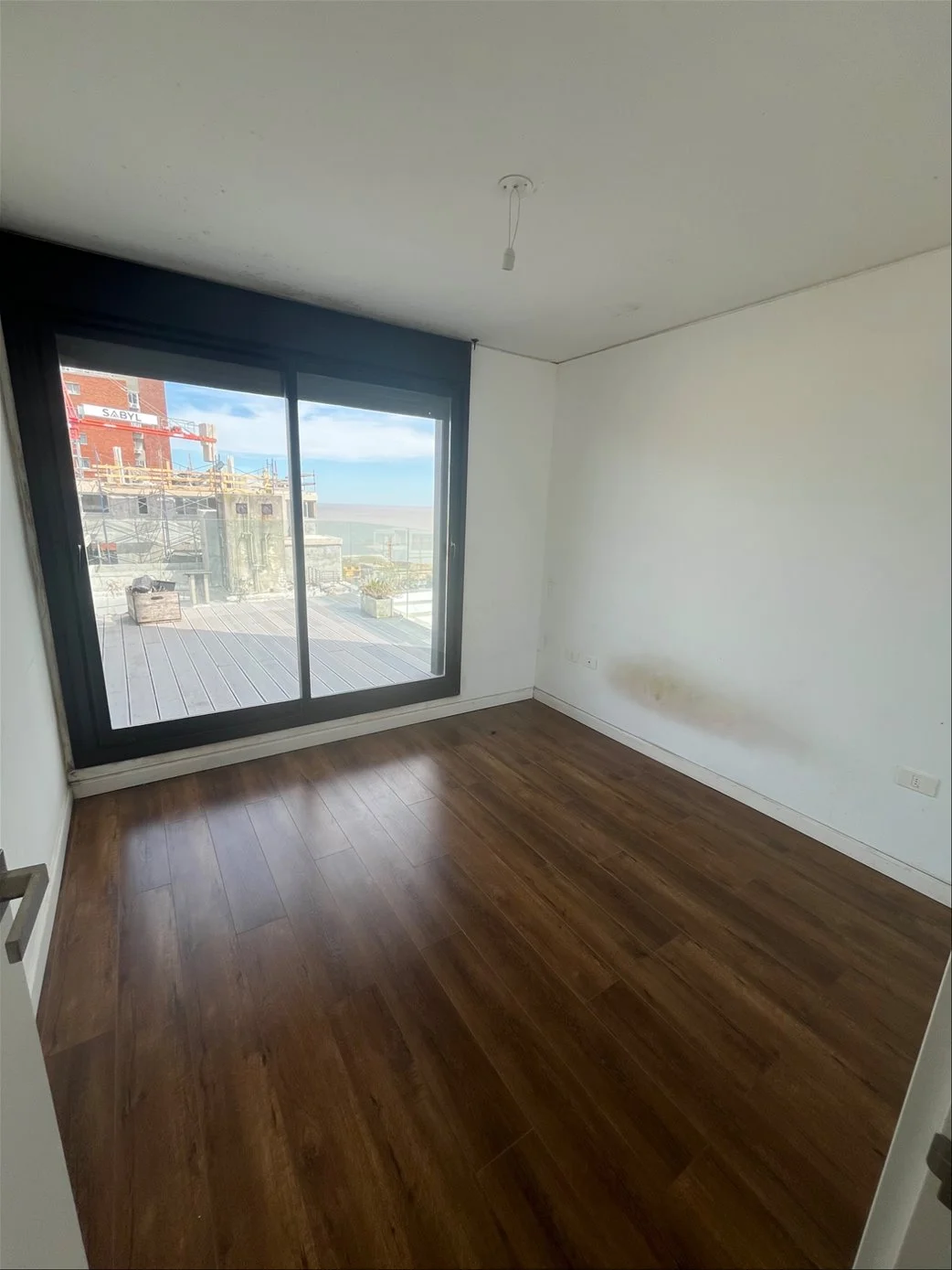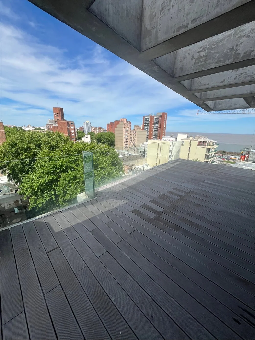 Edificio con seguridad 24 h, cámaras, parrilleros y terrazas comunes. El apartamento cuenta con piso flotante, aberturas de aluminio, cocina con bajo mesada y alacena, mesada de granito y conexiones para A/A y lavarropas.