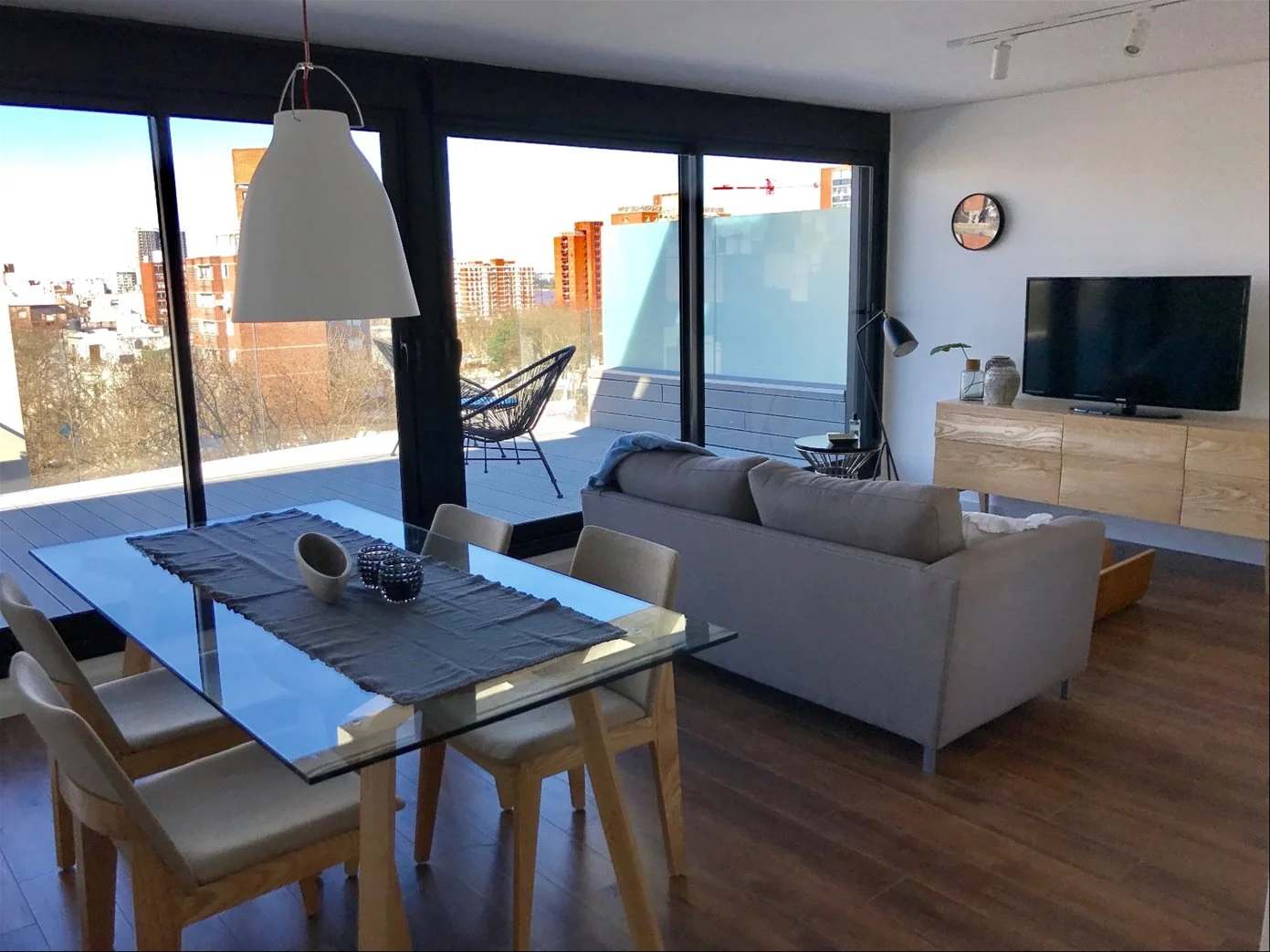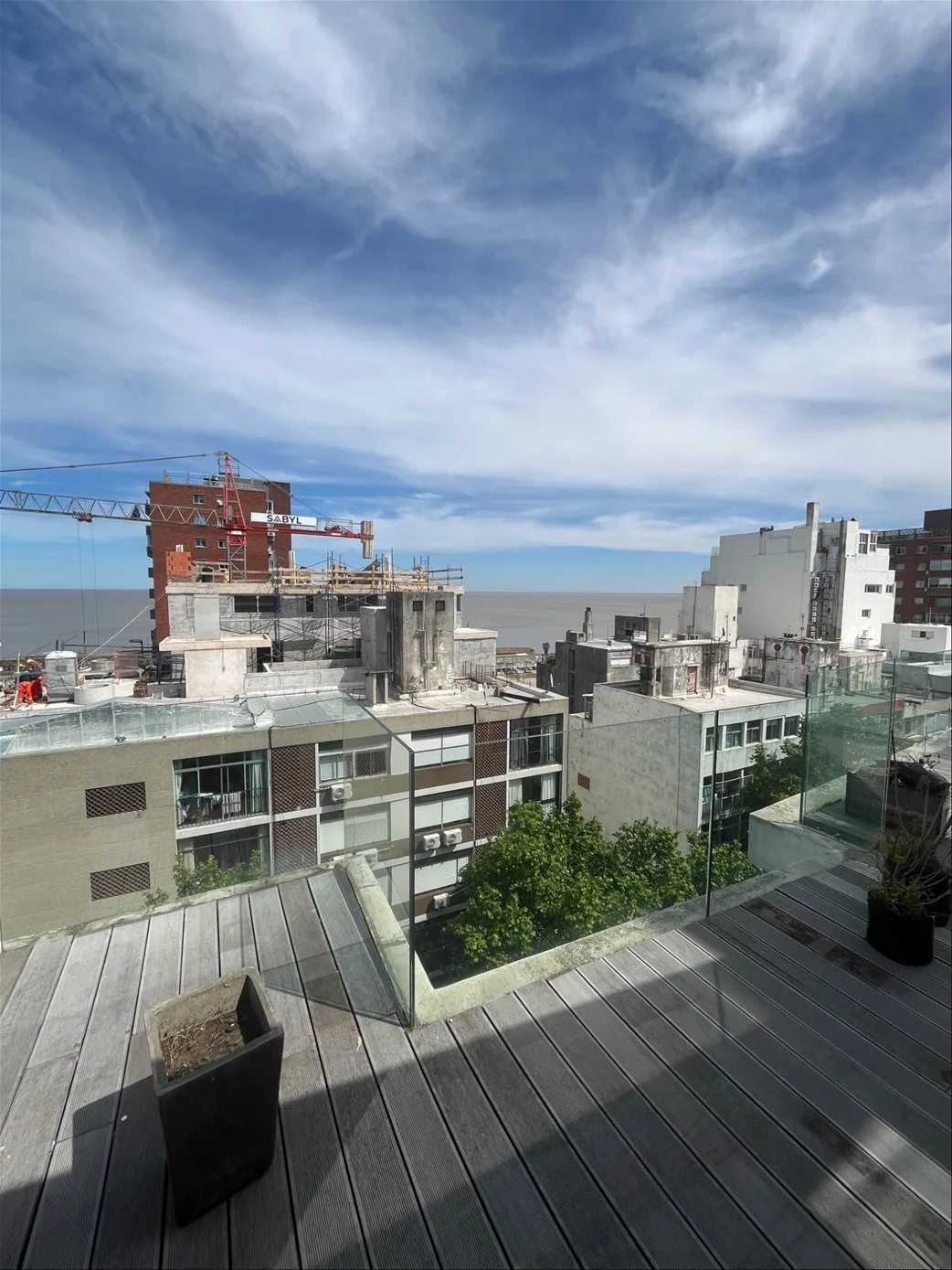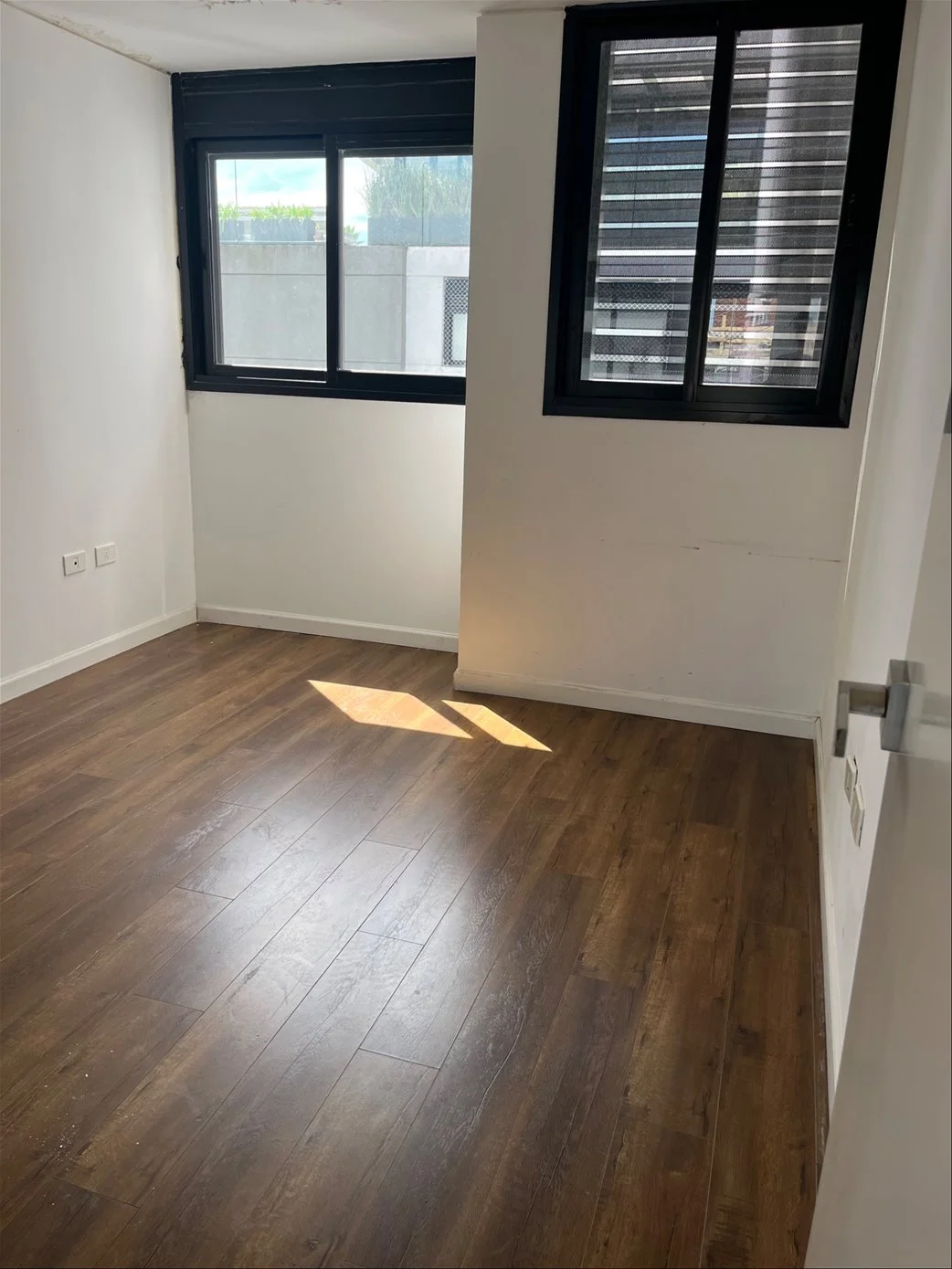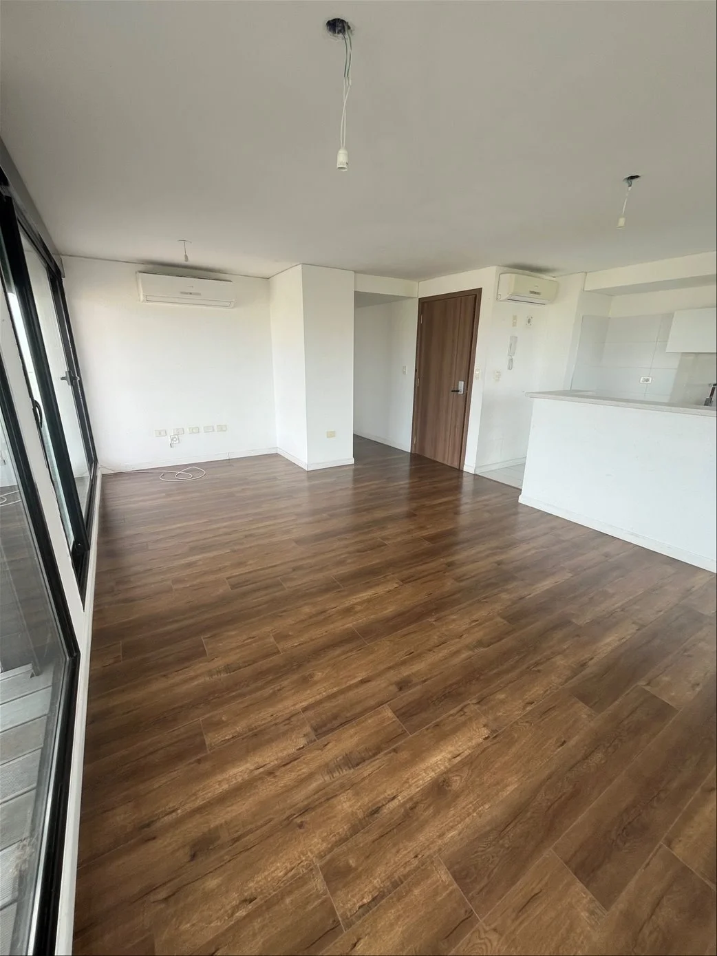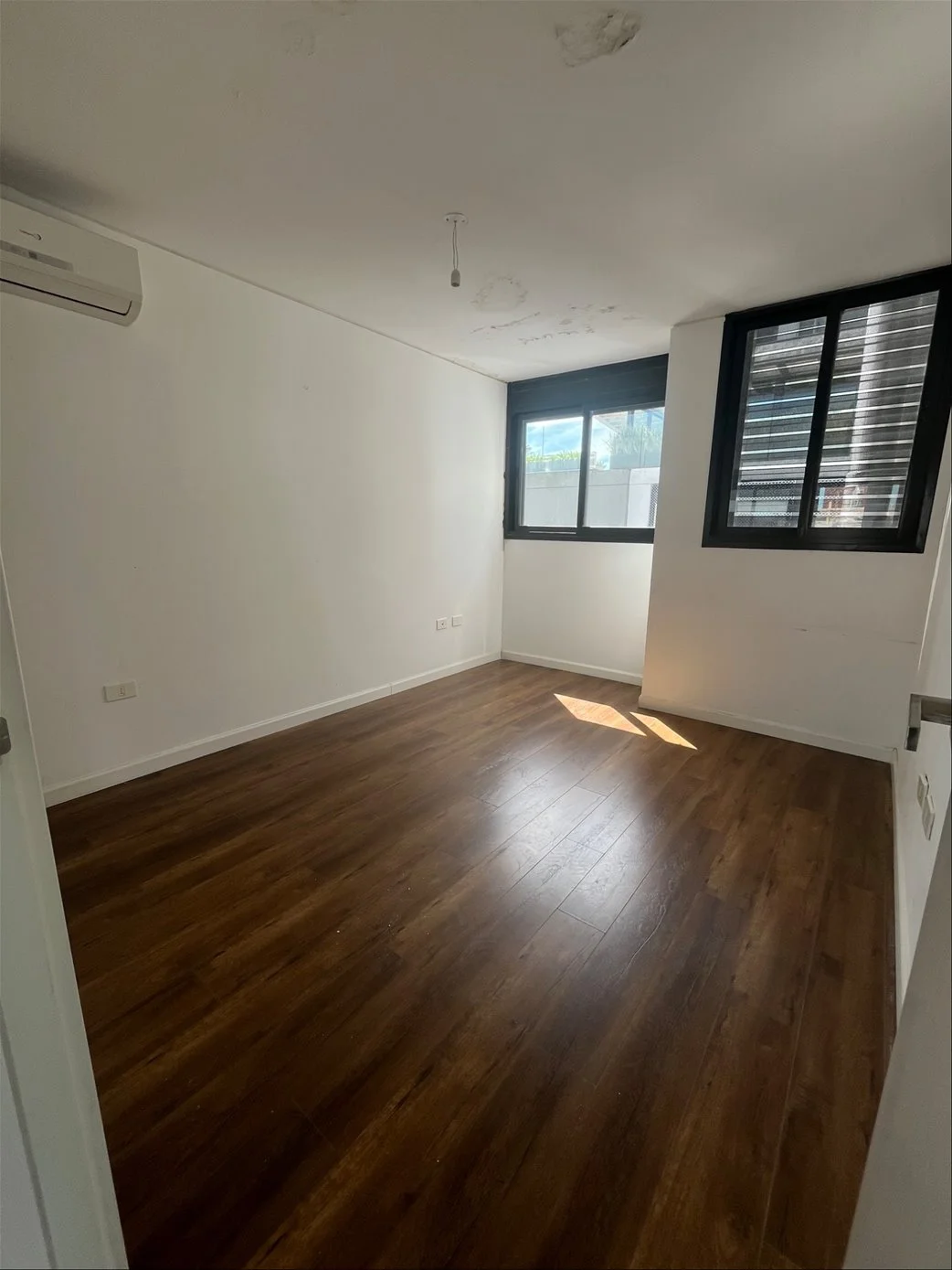 Edificio con seguridad 24 h, cámaras, parrilleros y terrazas comunes. El apartamento cuenta con piso flotante, aberturas de aluminio, cocina con bajo mesada y alacena, mesada de granito y conexiones para A/A y lavarropas.