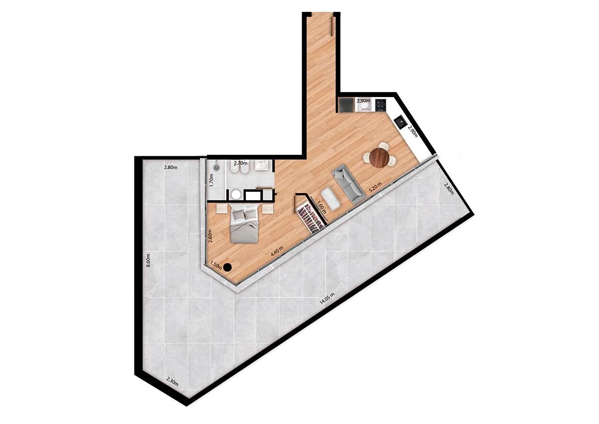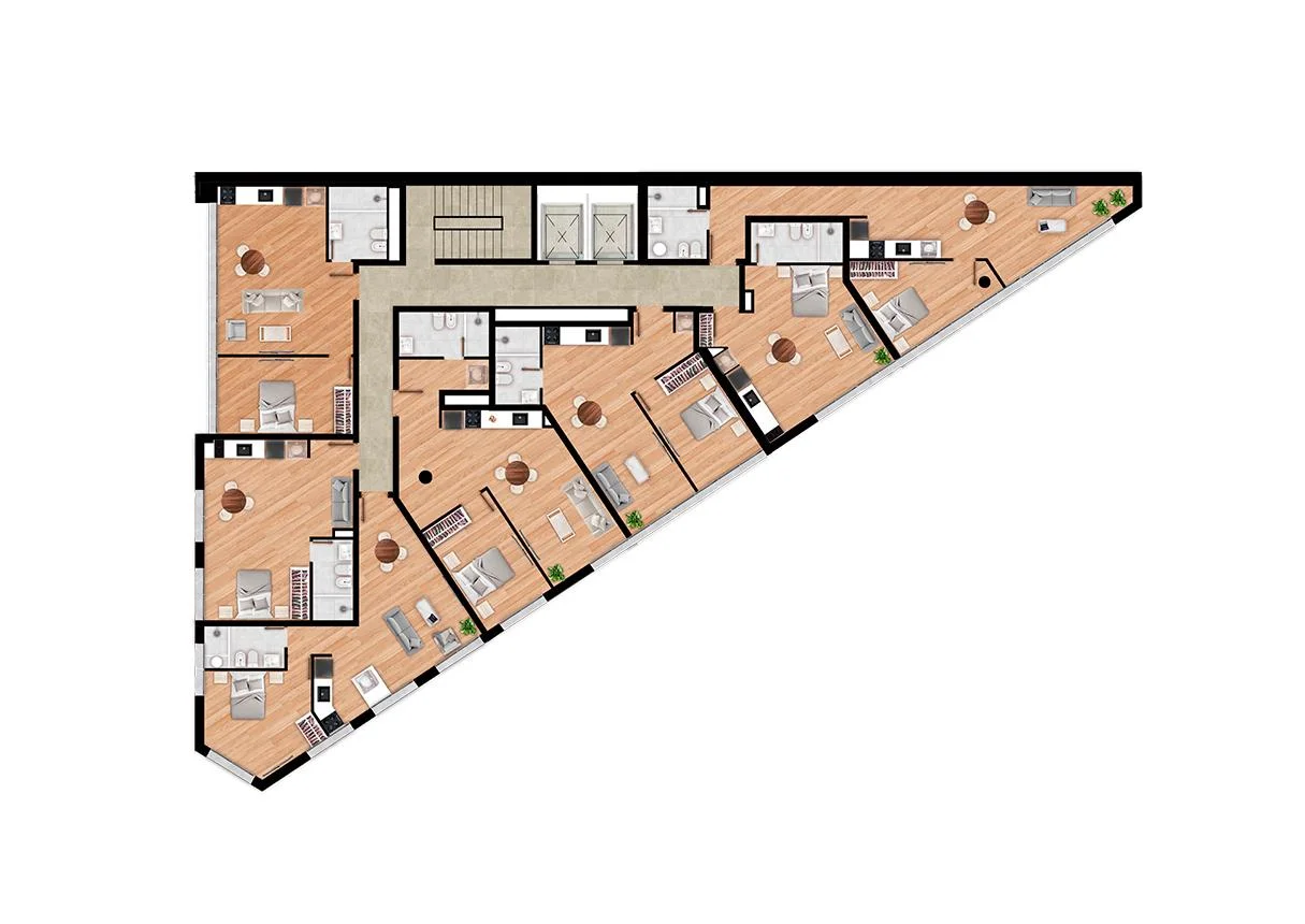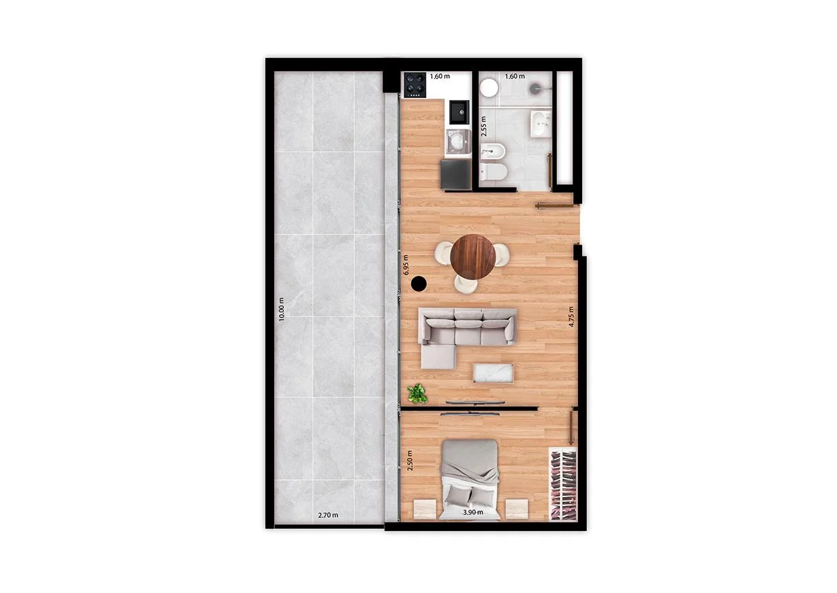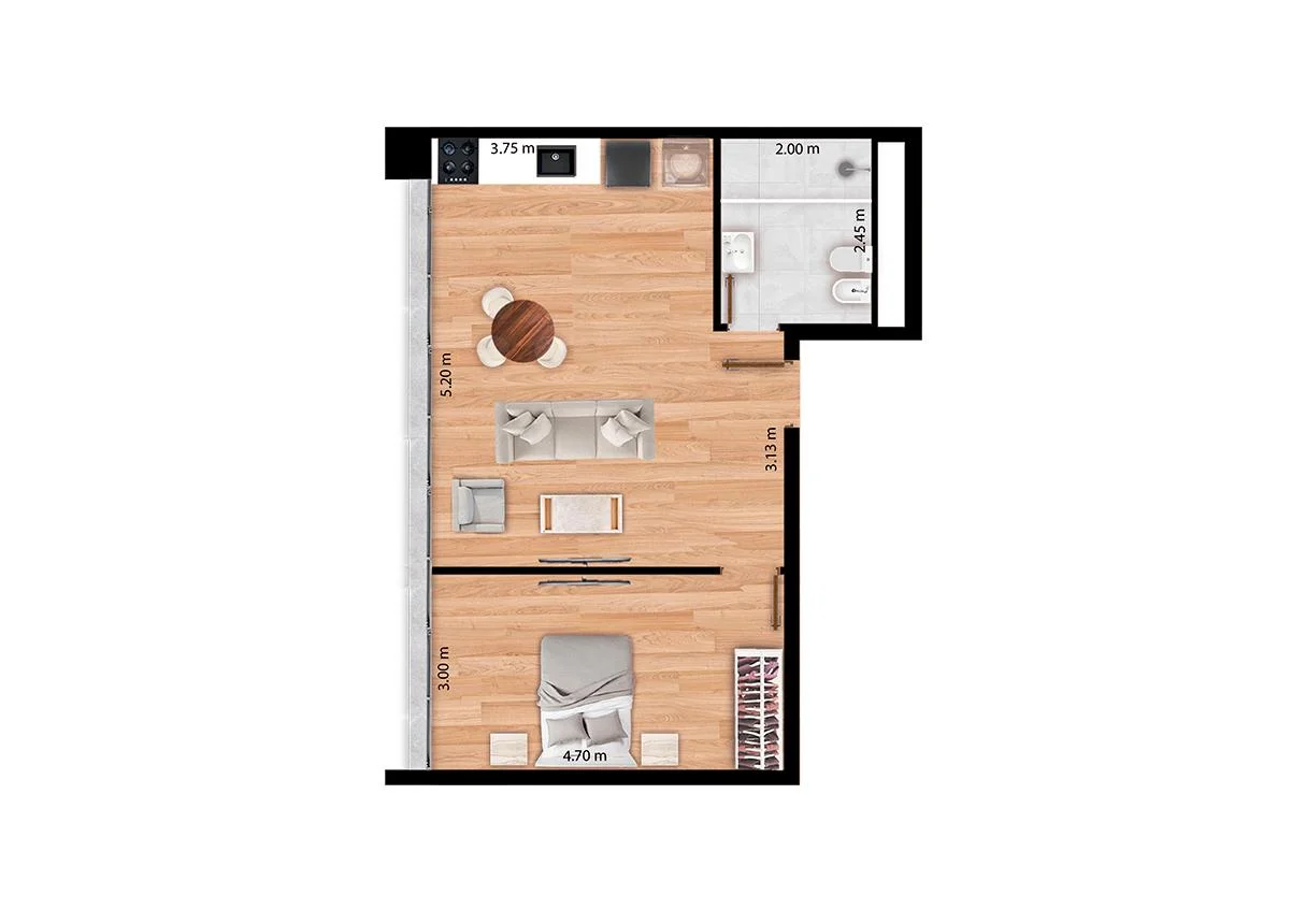 Superficies: Las unidades de un dormitorio cuentan con superficies desde 36 m², mientras que los monoambientes ofrecen desde 28 m².