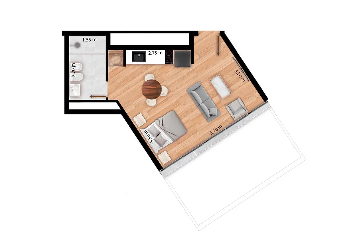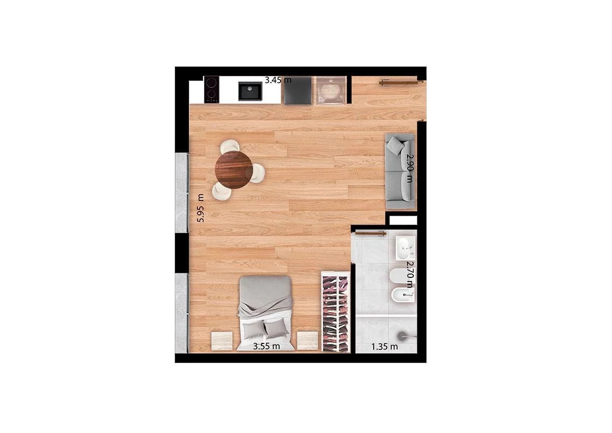 Precios: Monoambientes desde USD 89.000 y apartamentos de un dormitorio desde USD 95.000.