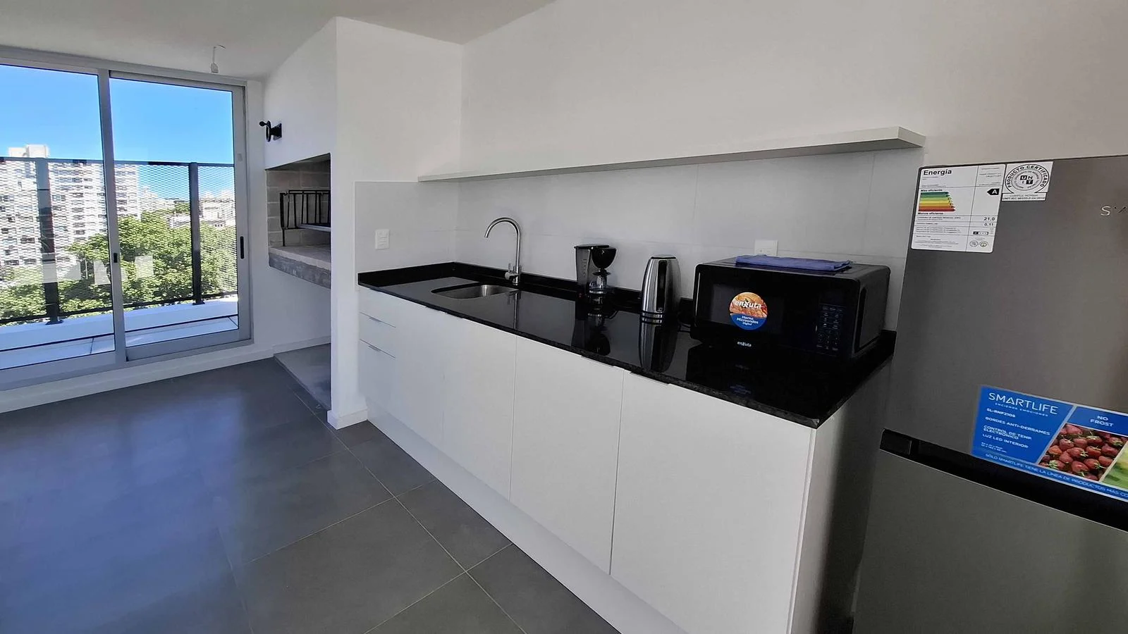 Salón con parrillero y gran terraza con vistas