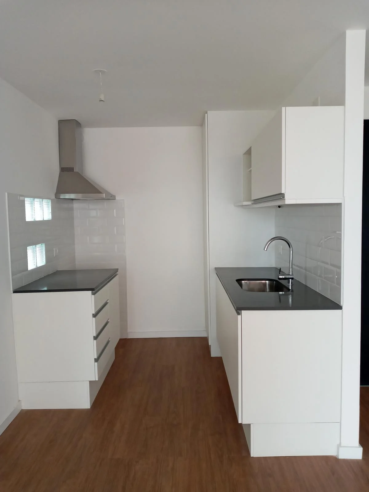 • Cocina con muebles bajo y sobre mesada, campana extractora.