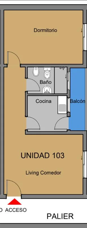 Apartamento, ubicado en primer piso por escalera, con acceso por corredor cerrado. Buena iluminación y ventilación