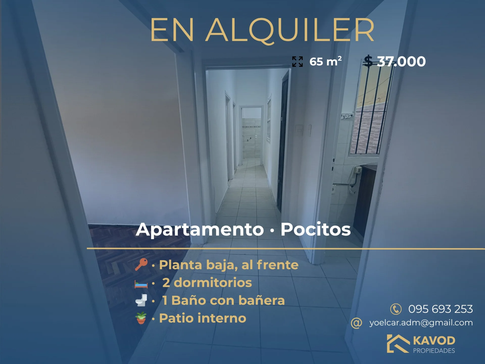 ???? Apartamento en alquiler en Pocitos – 2 dormitorios Apartamento en alquiler ubicado en el barrio La Mondiola, Pocitos, sobre Lorenzo Pérez esquina Cipriano Payán. La unidad cuenta con aproximadamente 65 m² y se desarrolla en un entorno residencial tranquilo. Dispone de living-comedor con buena iluminación natural, dos dormitorios, cocina definida, baño con bañera y conexión para lavarropas, y patio interno. Cuenta además con persiana automática en el living. Se encuentra en una ubicación con buena conectividad, a una cuadra de Av. Rivera, con acceso a múltiples líneas de transporte y servicios en la zona. Detalles: 2 dormitorios1 bañoPatio internoCocina definidaBuena iluminación natural Condiciones: ???? Alquiler: $37.000???? Gastos comunes: aprox. $2.600???? Comisión inmobiliaria: 1 mes de alquiler + IVA Propiedad adecuada para vivienda en zona residencial de Pocitos. ???? Consultas y coordinación de visitas.