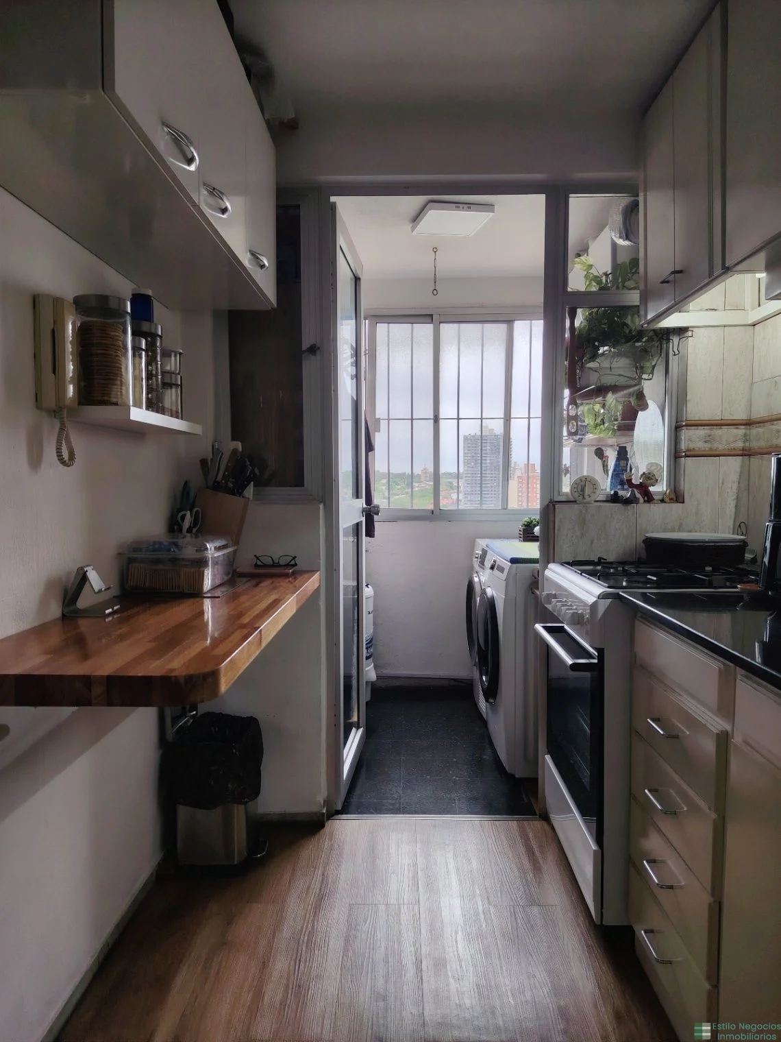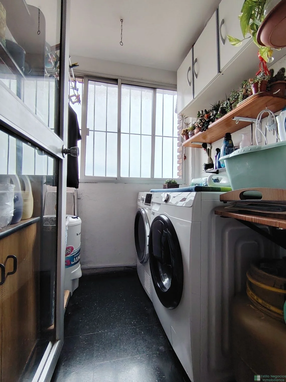 Terraza lavadero con espacio para lavadora y secaropas.
