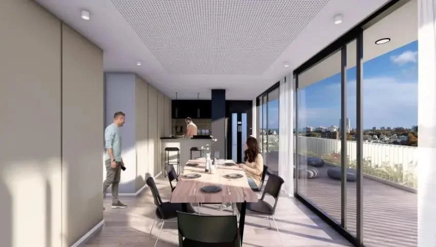 La unidad se ubica en el piso 11 y ofrece una vista abierta y luminosa. Cuenta con dos dormitorios y un baño, distribuidos en 50 metros interiores y una terraza de casi 9 metros, ideal para disfrutar del aire libre y la vista urbana. Cada espacio fue diseñado con materiales de calidad y una estética contemporánea, con previsión para aire acondicionado y terminaciones que priorizan el confort y la funcionalidad.