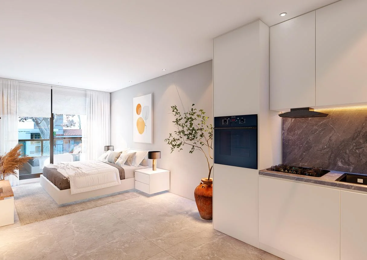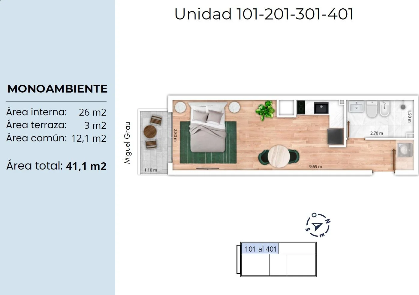 Cada detalle ha sido cuidadosamente seleccionado para ofrecer terminaciones de la más alta calidad, garantizando una inversión segura y duradera. Unidades monoambientes y de un dormitorio distribuidos en 4 plantas.