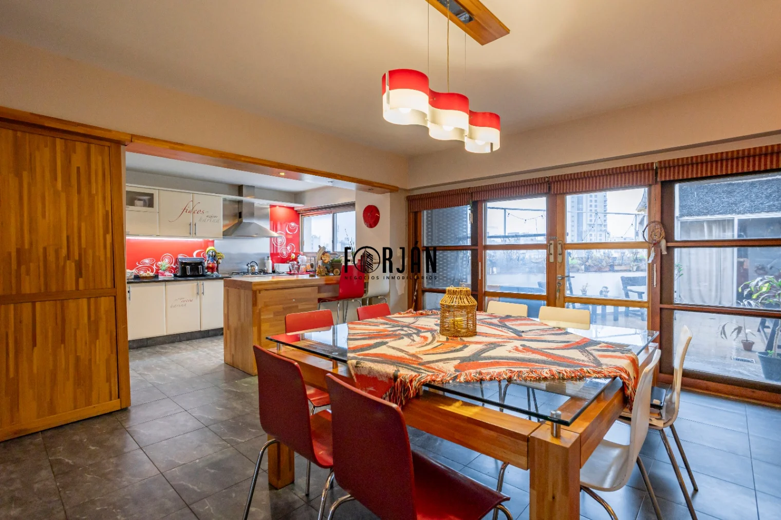 El penthouse cuenta con 4 dormitorios, uno de ellos de servicio, 4 baños con jacuzzi, una cocina completamente equipada, un acogedor living comedor y un encantador balcón que invita a disfrutar del aire libre, se destaca la amplitud de los espacios, al integrarse el living, comedor y cocina.
