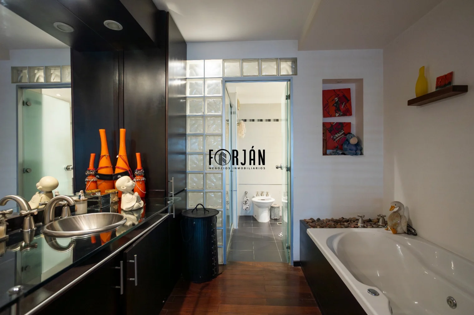 La comodidad se extiende al contar con 4 cocheras con acceso propio e independiente y estacionamiento para visitantes, facilitando la vida diaria. Este penthouse ha sido cuidado y mantenido con esmero, ofreciendo servicios modernos como aire acondicionado, calefacción, caldera y conexión para lavarropas, brindando también un salon en común de usos múltiples y fiestas.
