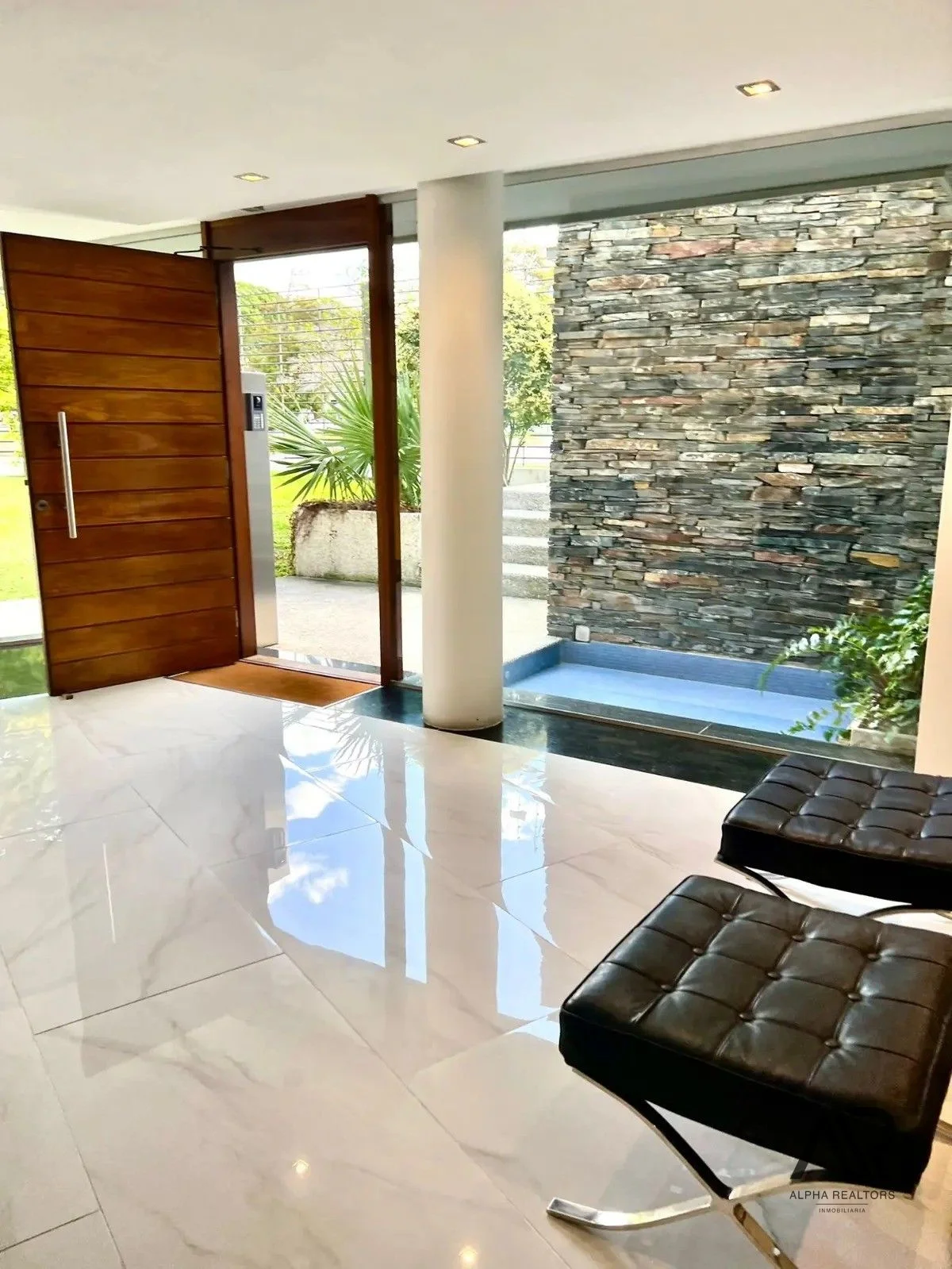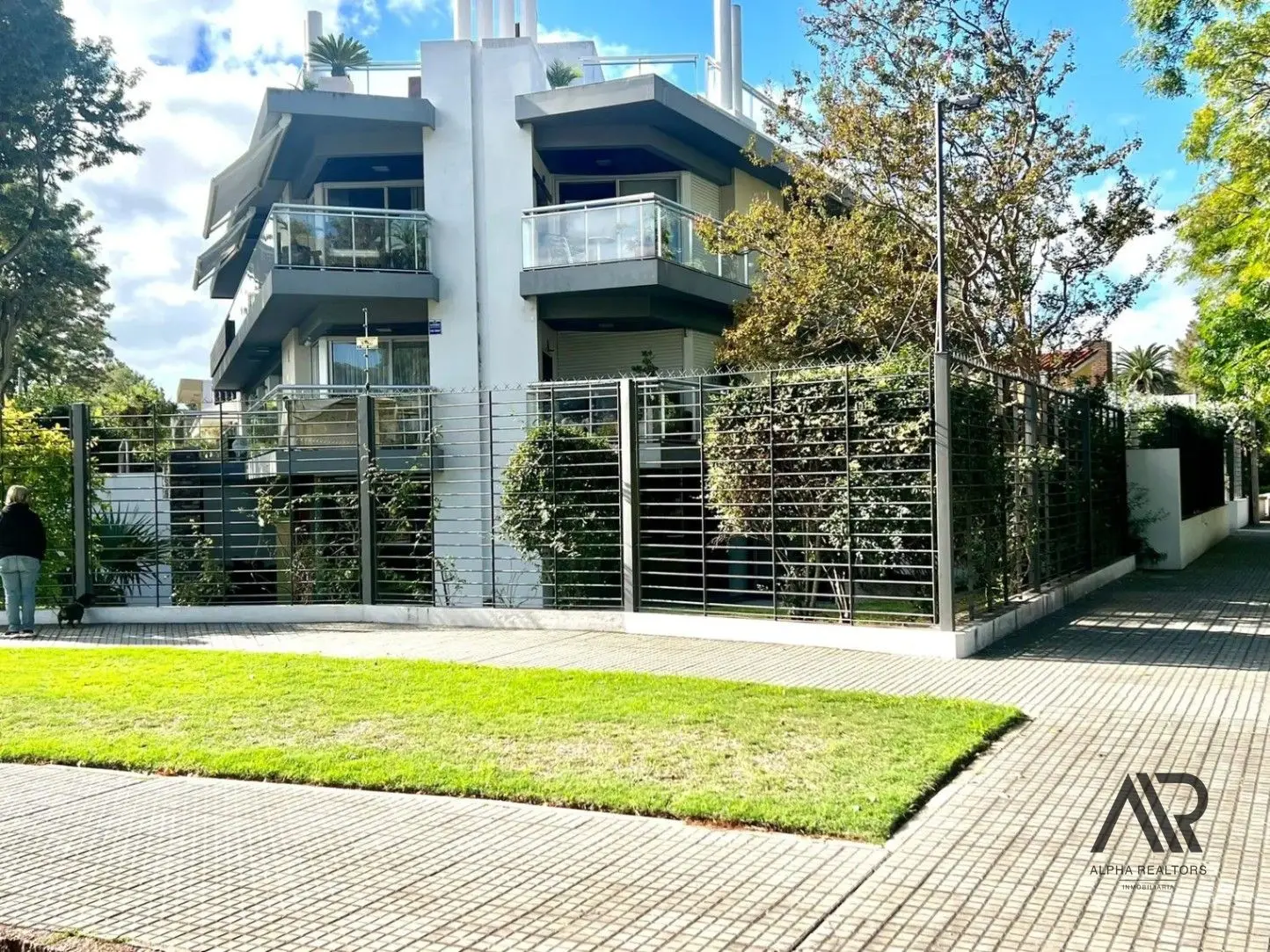 Este exclusivo apartamento cuenta con tres dormitorios, siendo el principal en suite, y cuatro baños en total. La cocina, cómoda y moderna, está equipada con mesadas en granito negro absoluto y placares de diseño. Los pisos son de madera dura de lapacho, lo que añade un toque de elegancia y calidez al ambiente. La calefacción es individual con losa radiante y sanitaria a gas, proporcionada por una caldera Baxi italiana, asegurando confort en todos los espacios. En la planta alta, los propietarios disfrutarán de una gran terraza que incluye parrillero, barra, pileta, un placard para vajillas y una piscina exclusiva con bomba clarificante, todo ello rodeado de un entorno verde y luminoso.