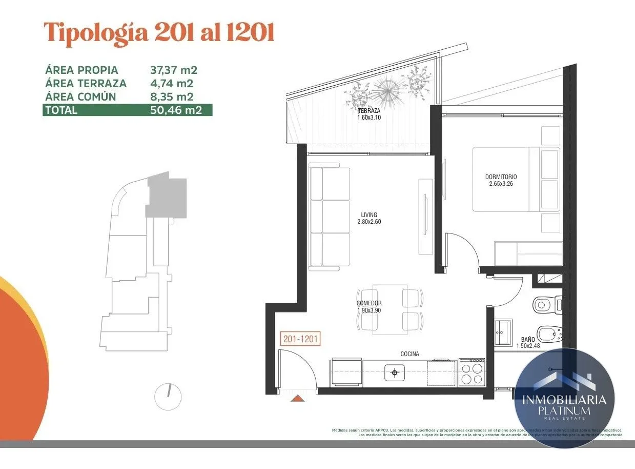 - Superficie total: 50.46 m² (45.72 m² cubiertos)