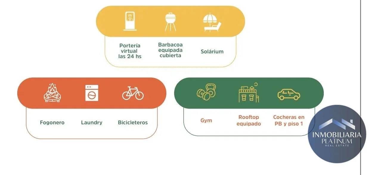- Amenities: Cowork, salón de usos múltiples, gimnasio, lavadero, desayunador, terraza