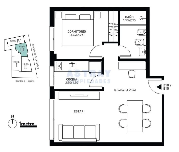$ ~6,790,000 / + $ 4,300 common expenses / U$S 2,982/m2
