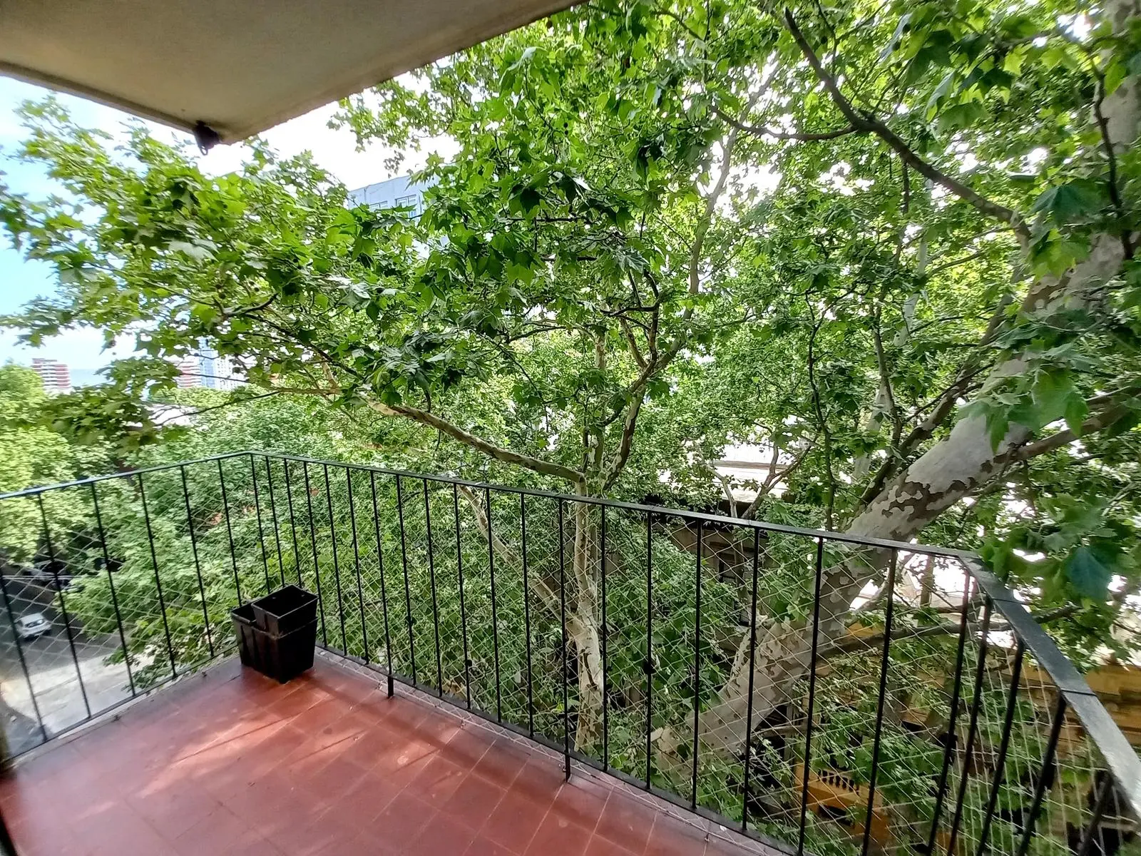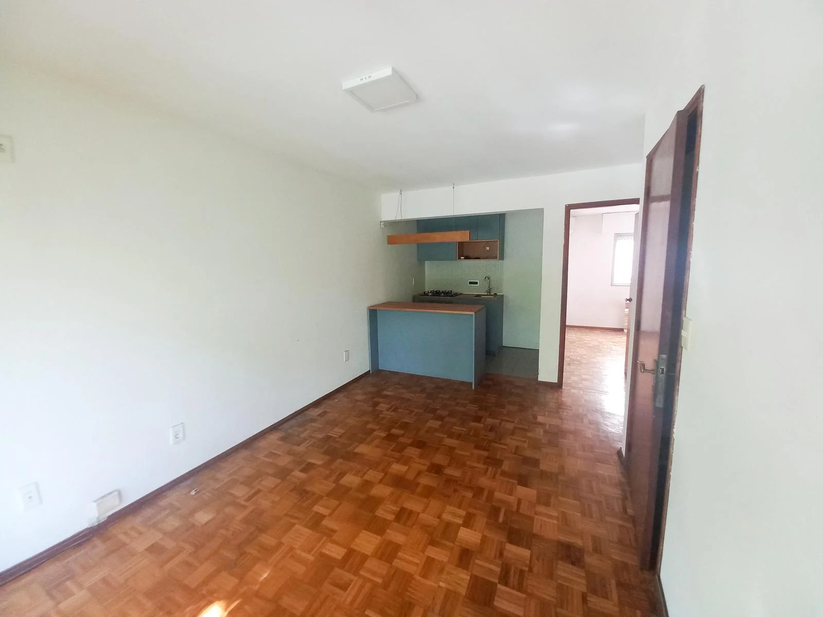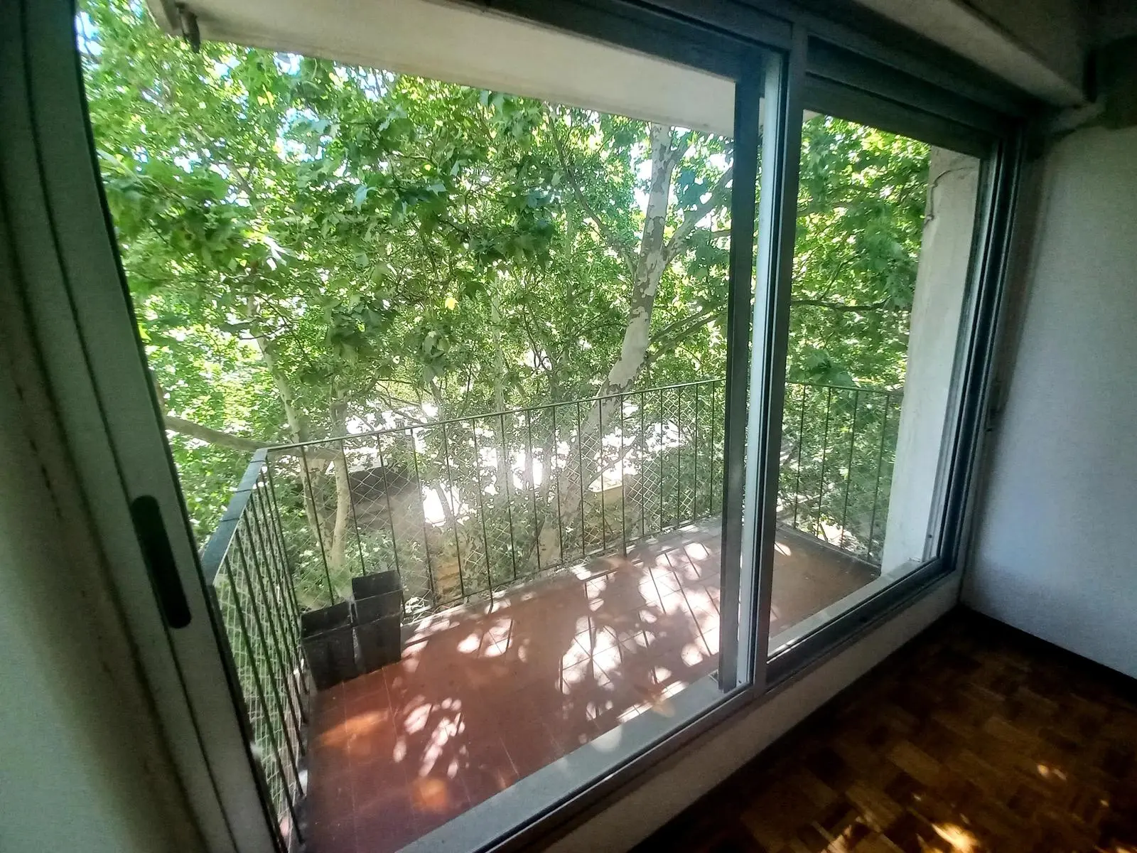 Living comedor con pisos de parquet y salida a balcón al frente.