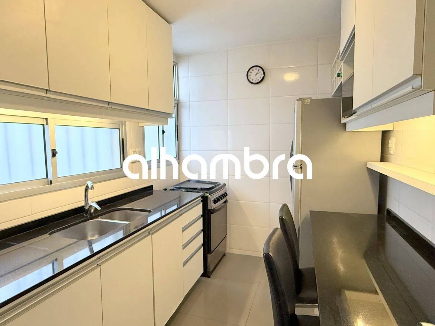 Cocina definida, renovada, con doble mesada (una tipo barra), muebles bajo y sobre mesada, excelente ventilación y luz natural.