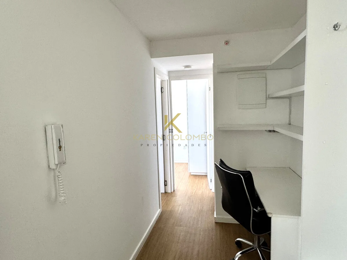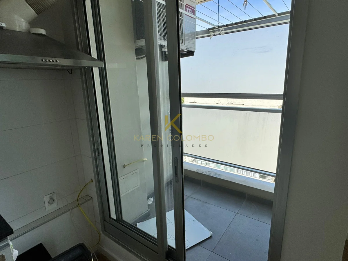 La unidad cuenta con una cocina integrada con muebles bajo y sobre mesada, que se conecta con el living y el comedor muy luminosos con salida a terraza panorámica.