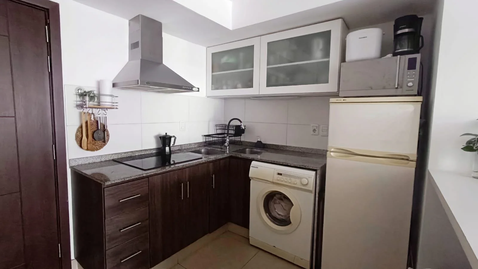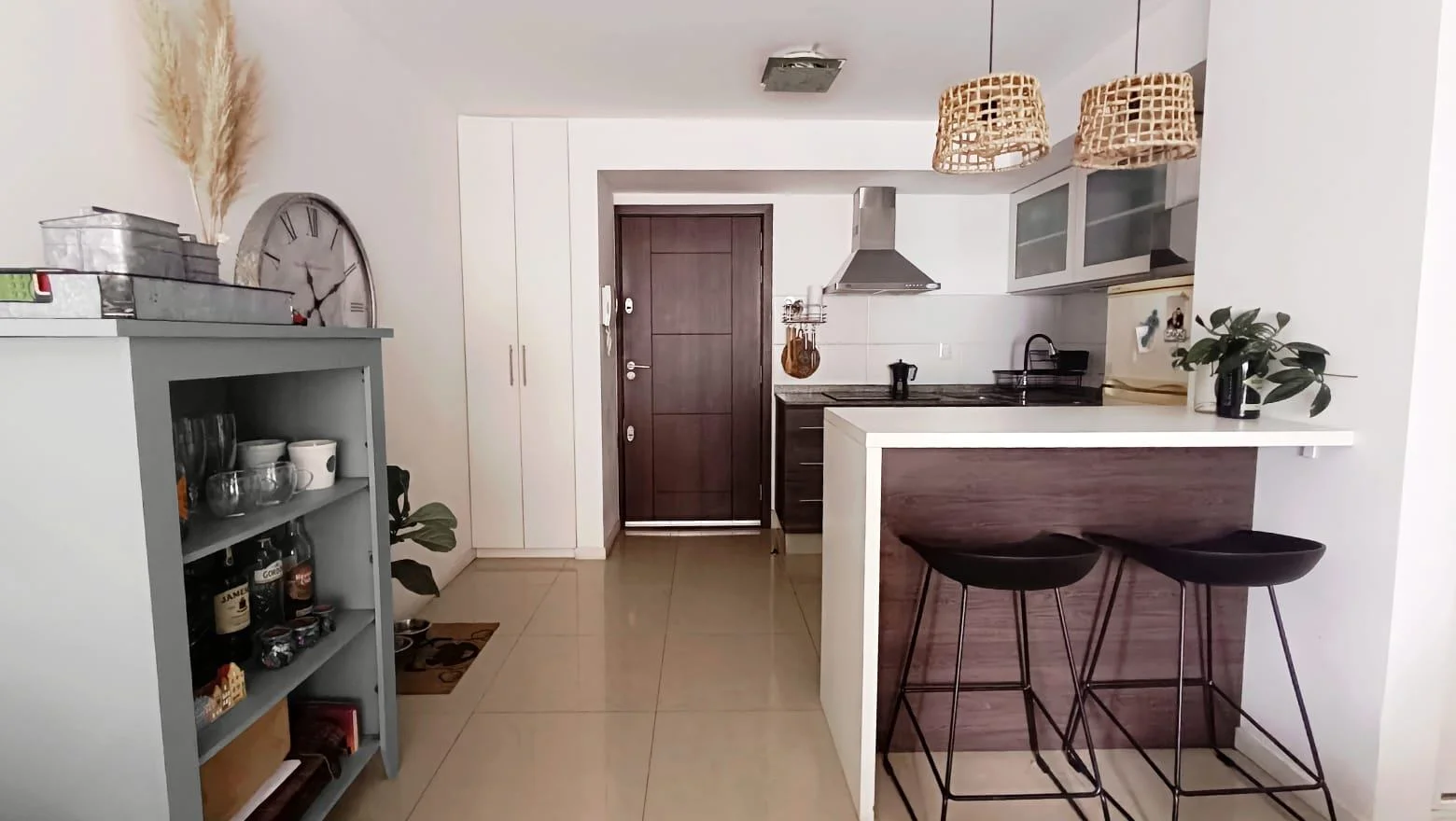 El apartamento se compone de 3 ambientes, que incluyen 2 acogedores dormitorios, un baño completo y una cocina completamente equipada con anafe, campana y muebles aéreos y bajo mesada. Su orientación norte permite la entrada de luz natural durante todo el día, destacando la calidez de sus espacios. Además, cuenta con aire acondicionado, placards y conexión para lavarropas, todo lo necesario para una vida moderna y práctica. La propiedad es apta para crédito, lo que facilita la posibilidad de financiamiento.