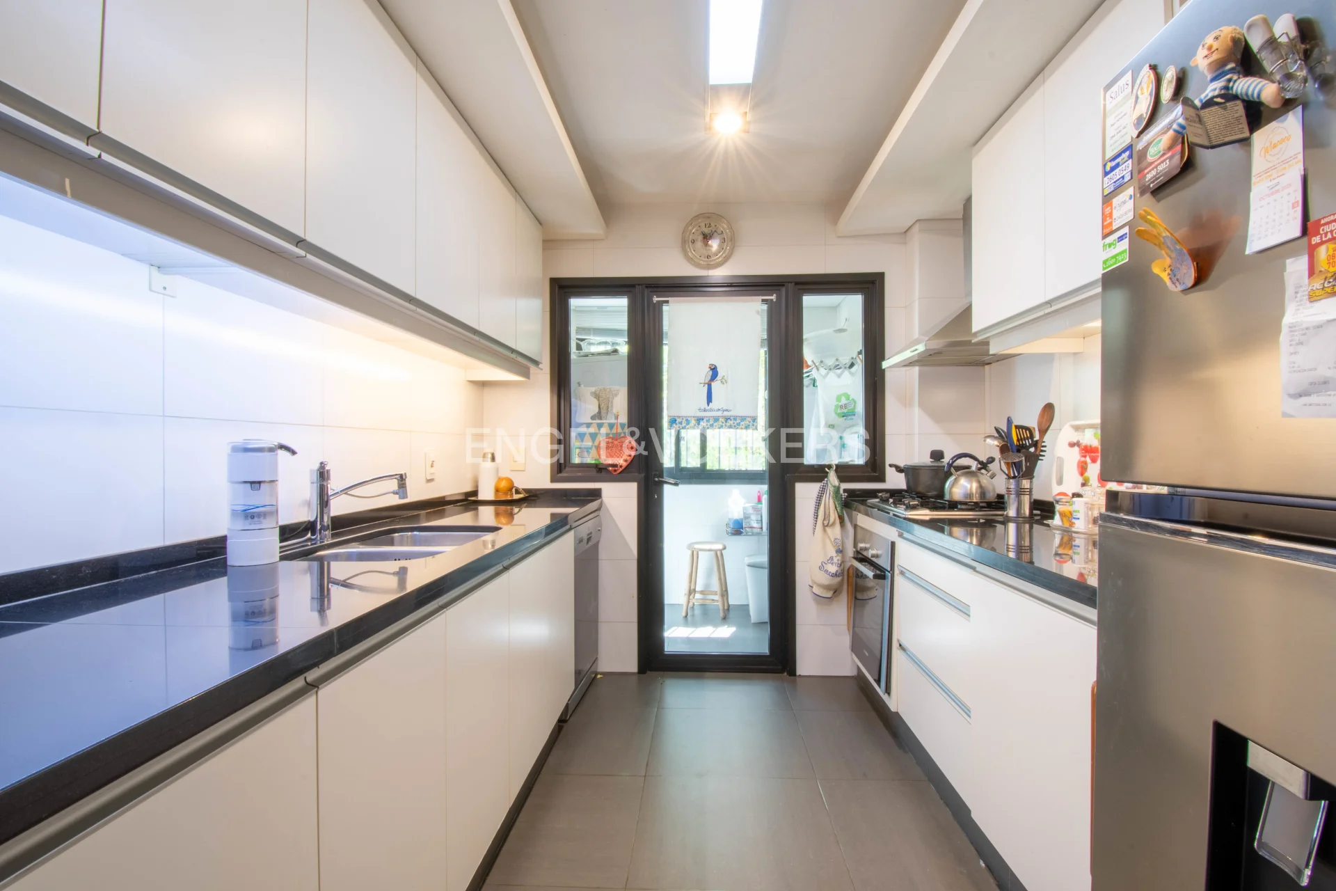 La cocina definida, con terraza lavadero, se conecta a la zona de servicio completo.