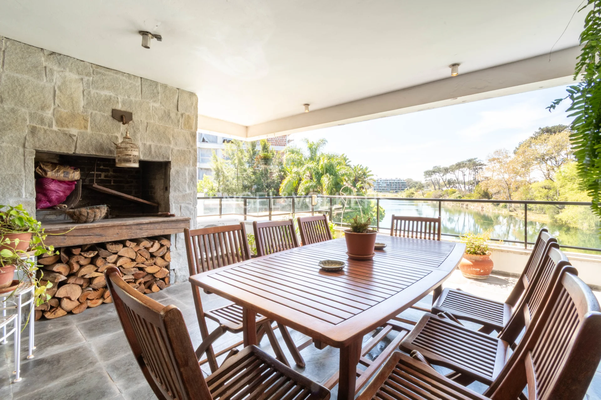 Al ingresar, nos recibe una elegante recepción con despojador y toilette. El amplio living comedor se abre hacia una gran terraza con parrillero, desde donde se disfrutan vistas despejadas al lago. El espacio se complementa con un estar diario semi integrado mediante puertas corredizas, con estufa a leña que aporta calidez y confort.
