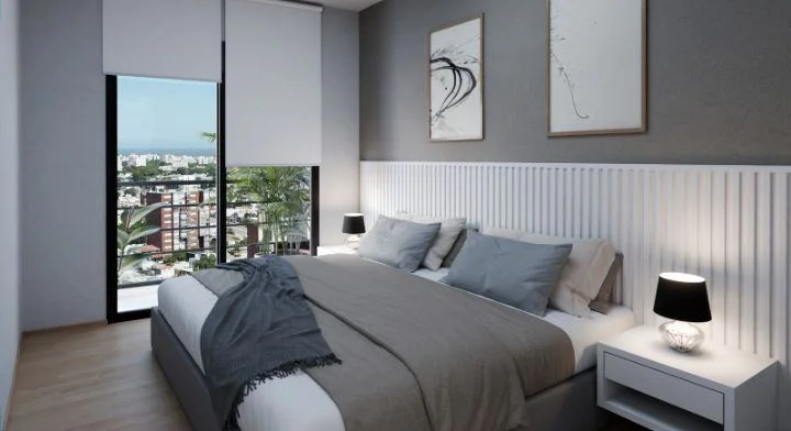 El apartamento cuenta con 3 ambientes bien distribuidos: un acogedor dormitorio, un baño completo, y una cocina integrada con un cómodo salón. Además, ofrece un encantador balcón que permite disfrutar de vistas al exterior. Entre las características adicionales, se destacan la disponibilidad de aire acondicionado, calefacción, conexión a internet y cable TV, así como sistemas de seguridad como alarmas y cámaras CCTV. El edificio también dispone de ascensor, piscina, gimnasio, salón de fiestas y áreas comunes, todo pensado para ofrecer una calidad de vida excepcional.