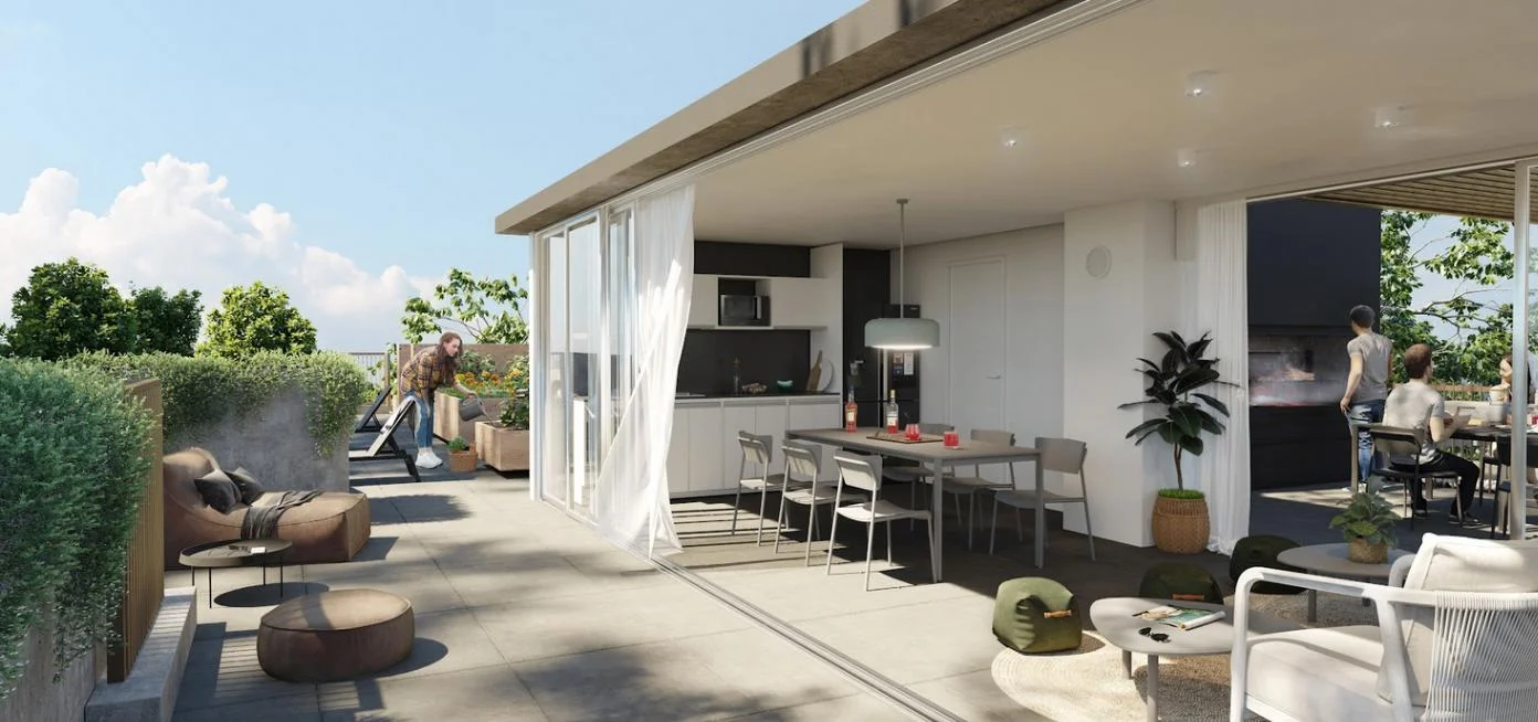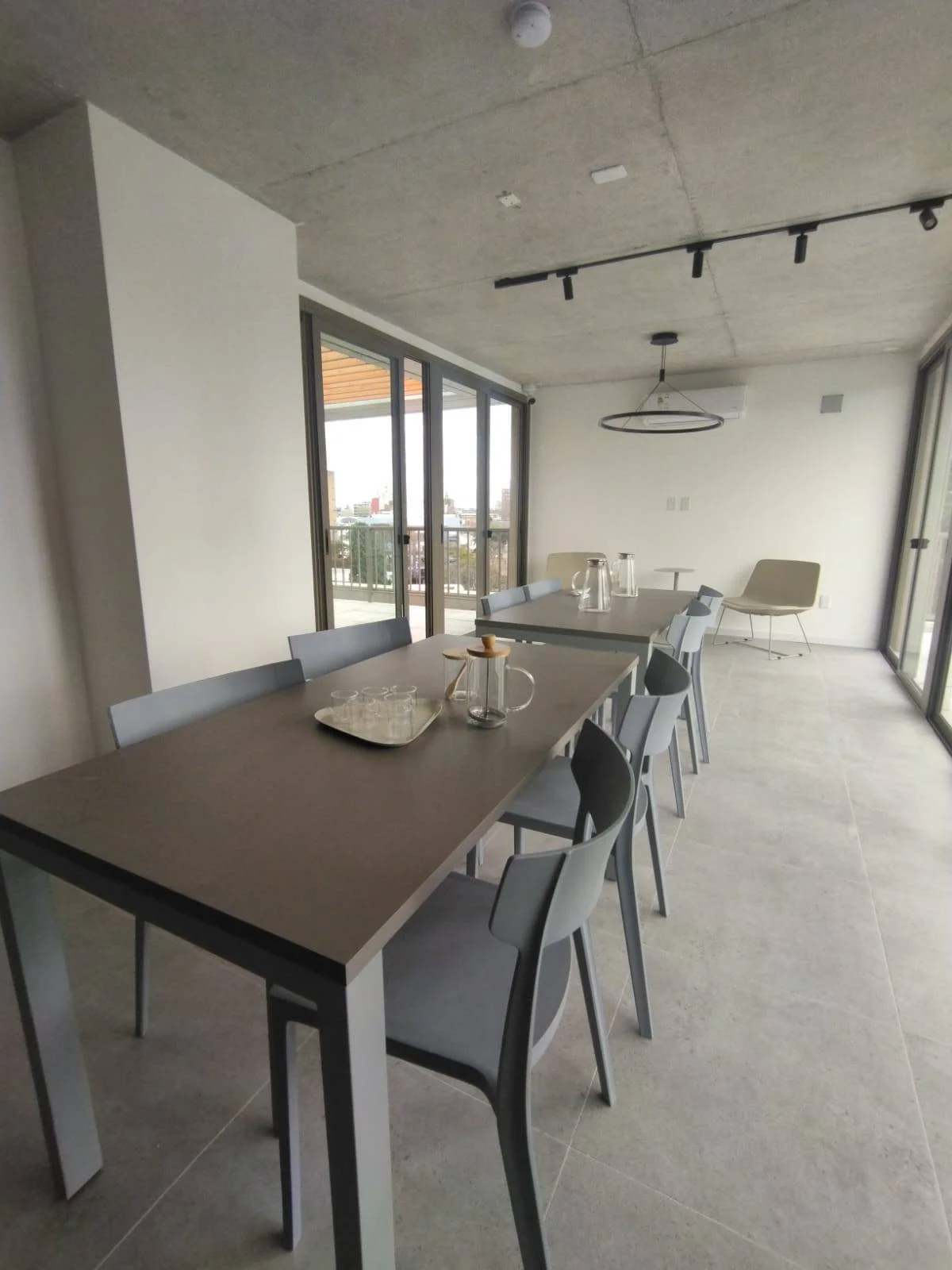 El apartamento, a estrenar, cuenta con 45 m² cubiertos y una espectacular terraza de 25 m² en la azotea, de uso exclusivo, perfecta para el esparcimiento y disfrute al aire libre. Dispone de dos ambientes, incluyendo dos dormitorios, un baño, cocina, comedor y balcón. La orientación oeste asegura una buena iluminación natural durante el día. Además, el edificio está equipado con ascensor, portón automático y ofrece una serie de previsiones como aire acondicionado, internet, WiFi, y conexión para lavarropas.