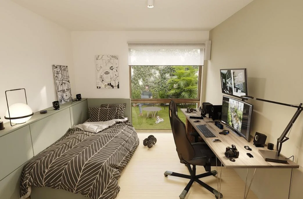 Descubre este moderno apartamento en venta en La Blanqueada, una zona consolidada que ofrece todos los servicios necesarios para una vida cómoda y práctica. Este proyecto, promovido por la agencia de vivienda, cuenta con el máximo de beneficios fiscales, lo que lo convierte en una opción atractiva tanto para inversión como para residencia. El inmueble, a estrenar, se encuentra en un complejo cerrado que garantiza seguridad y tranquilidad, además de presentar un excelente nivel constructivo. El apartamento cuenta con 32 m² cubiertos distribuidos en un ambiente acogedor que incluye cocina integrada a un estar, un dormitorio y un baño, ideal para quienes buscan un espacio funcional y bien distribuido.