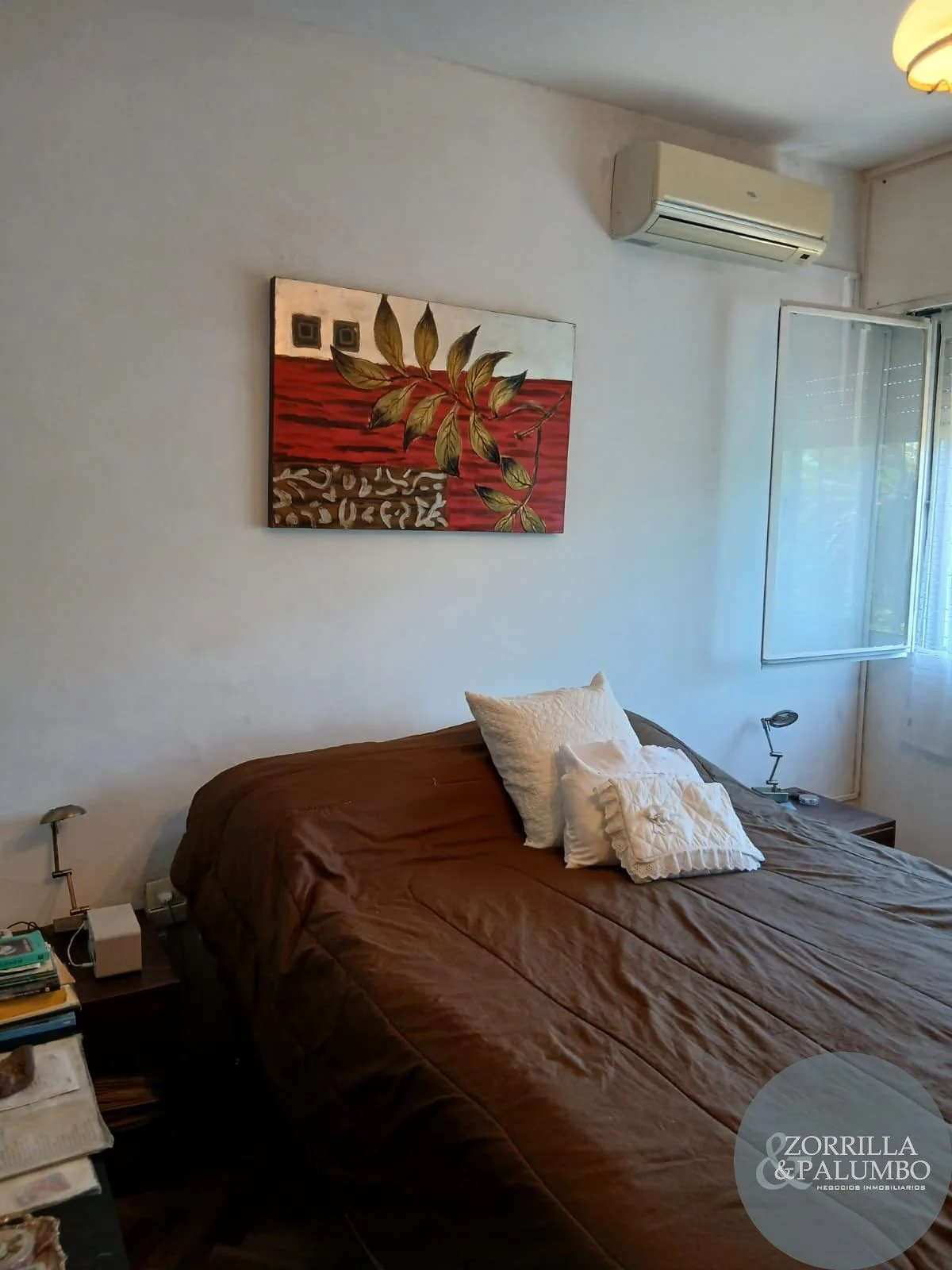 El living comedor, que se integra a la cocina mediante una barra y un pasaplatos, ofrece una luminosidad excepcional gracias a su privilegiada orientación norte, recibiendo sol durante todo el día. El apartamento ha sido actualizado en todas sus instalaciones, incluyendo sanitaria y electricidad. Además, cuenta con una estufa a leña en el living comedor, dos aires acondicionados y un extractor-purificador de aire en la cocina. La terraza al frente, equipada con toldo, brinda una hermosa vista despejada hacia un entorno verde, creando un espacio perfecto para el descanso.