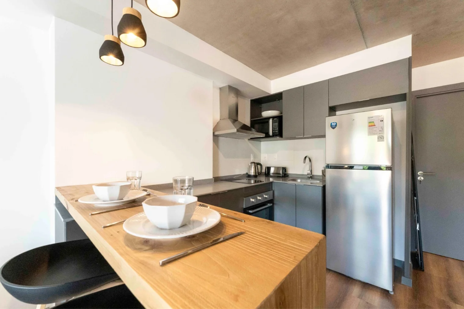 La unidad de desarrolla en una superficie total de 75.9 m², de los cuales 56.6 m² son cubiertos y 3.4 m² son descubiertos. Este moderno apartamento en BeOne Fit26 destaca por su gran luminosidad, gracias a sus amplios ventanales de piso a techo que aportan una vista excepcional y un ambiente agradable.