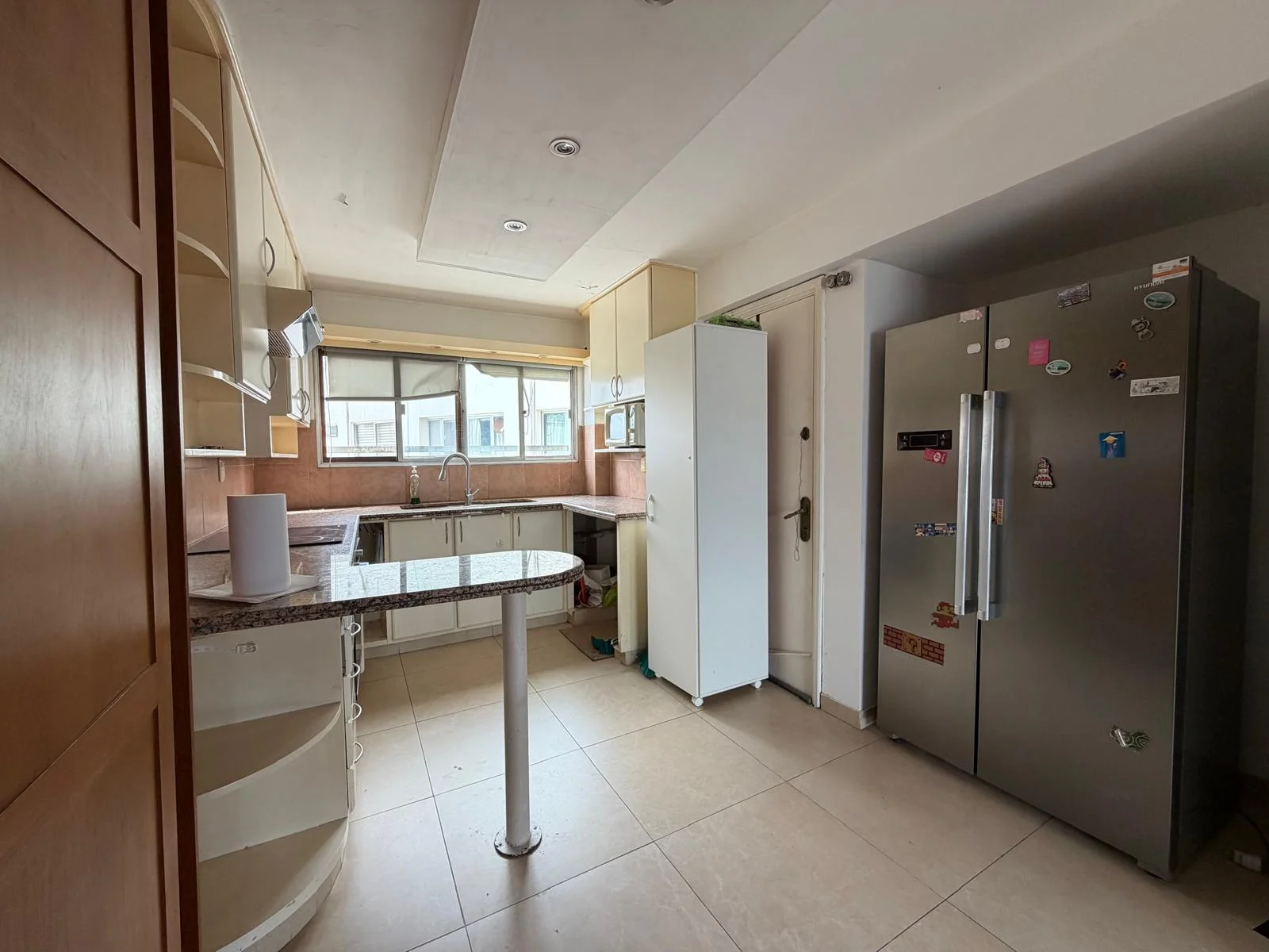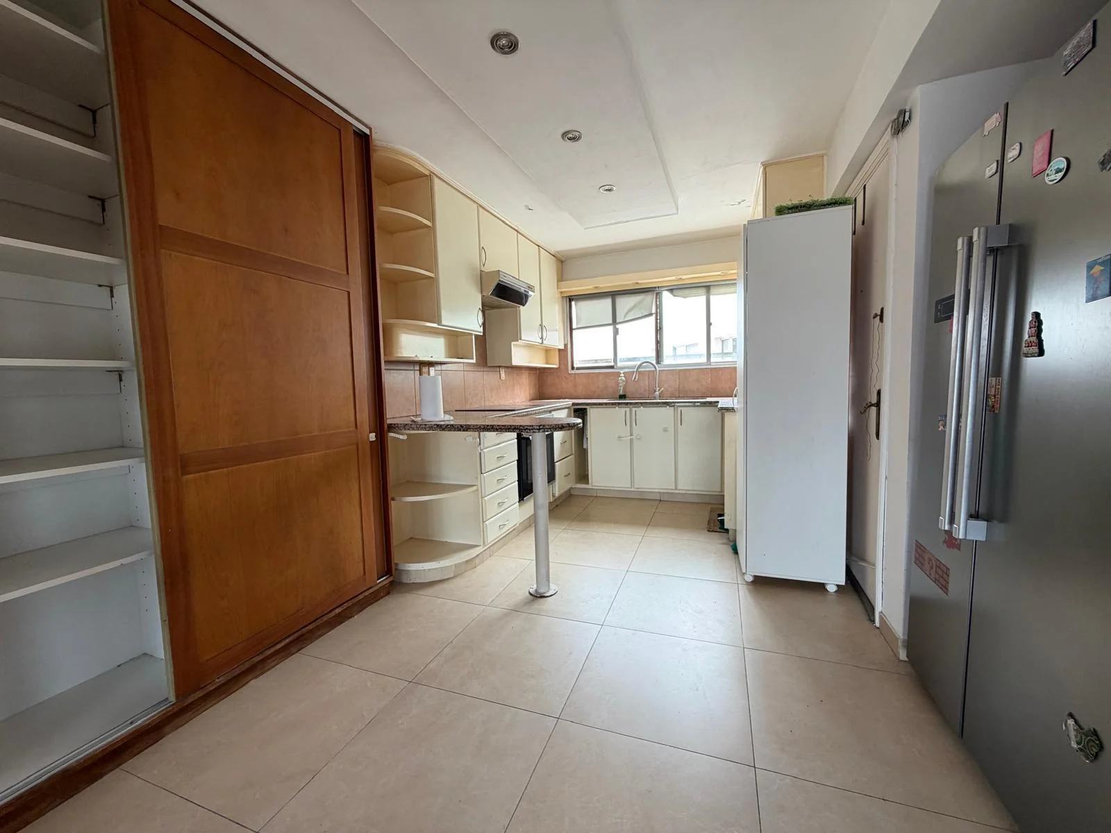 La cocina, orientada al norte y con separación de vidrio corredizo, recibe luz natural durante todo el día. La división de vidrio permite mantenerla visualmente conectada con el área social o independizarla según el momento, una solución de diseño que combina funcionalidad y apertura sin resignar ninguna de las dos.