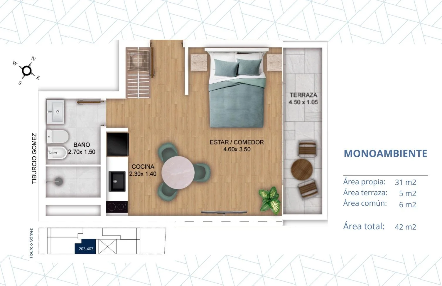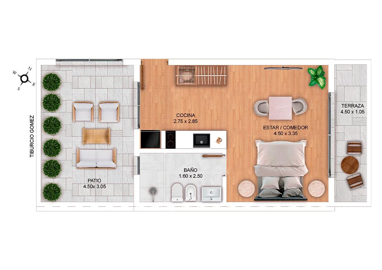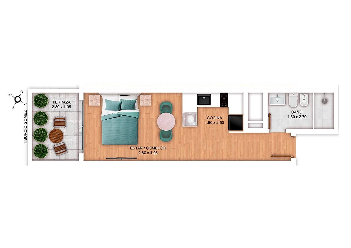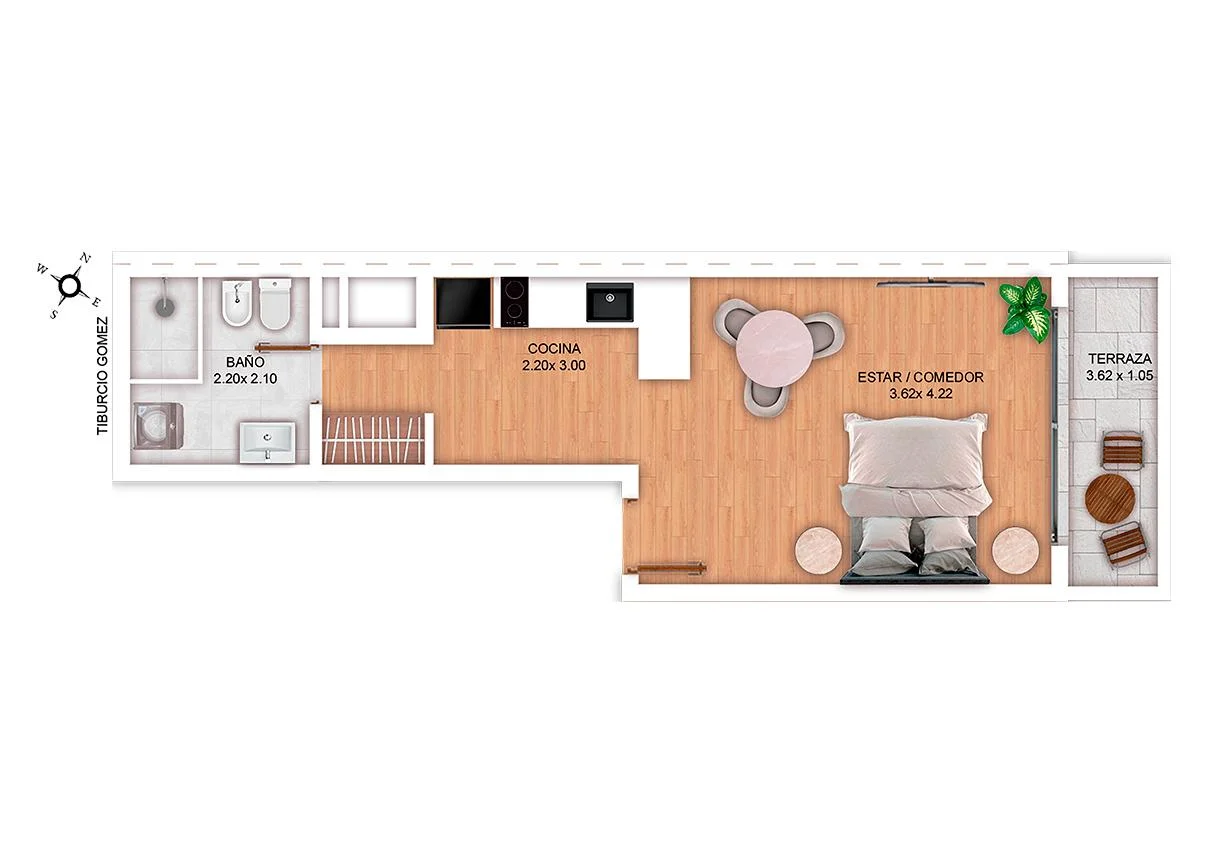 Monoambientes: Diseñados para maximizar el espacio y la funcionalidad, ideales para profesionales o como inversión.