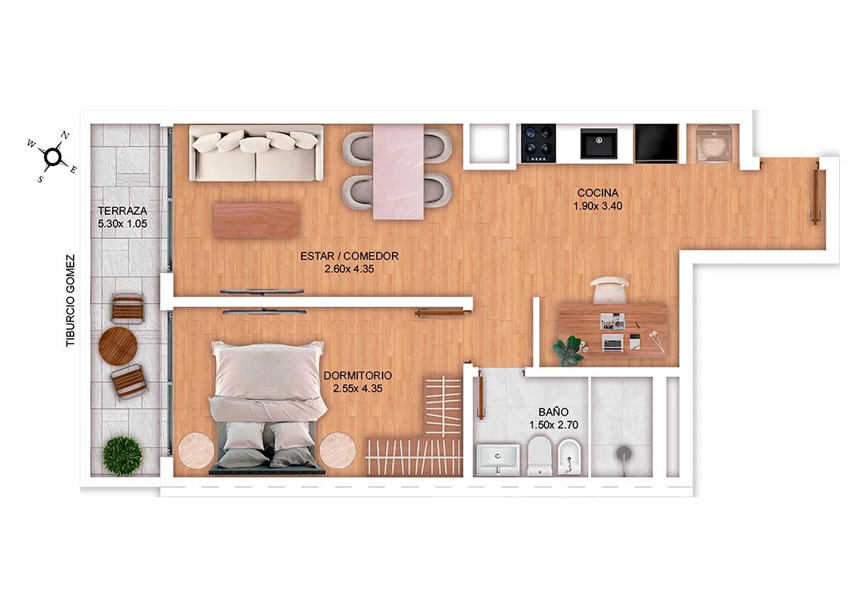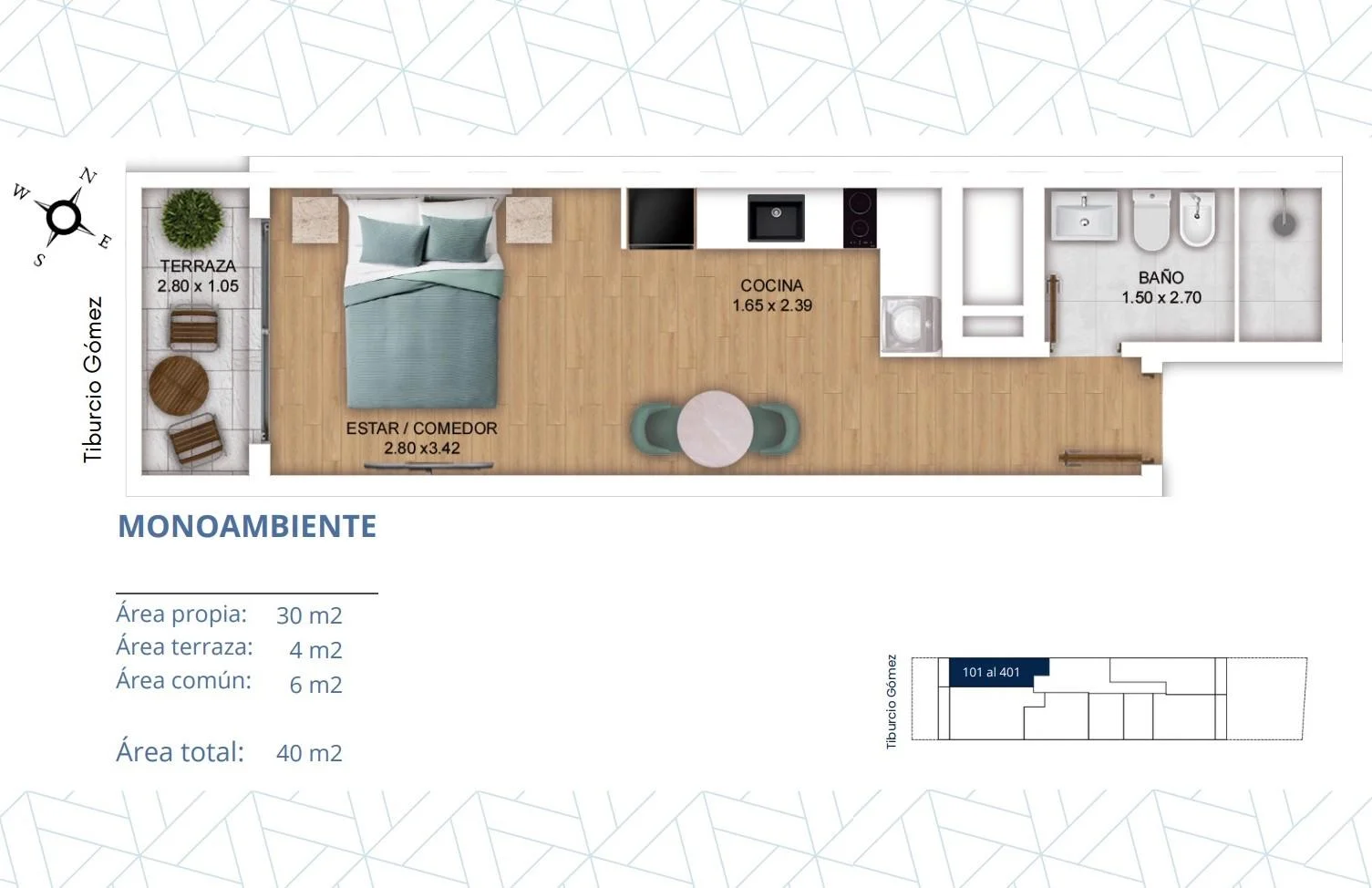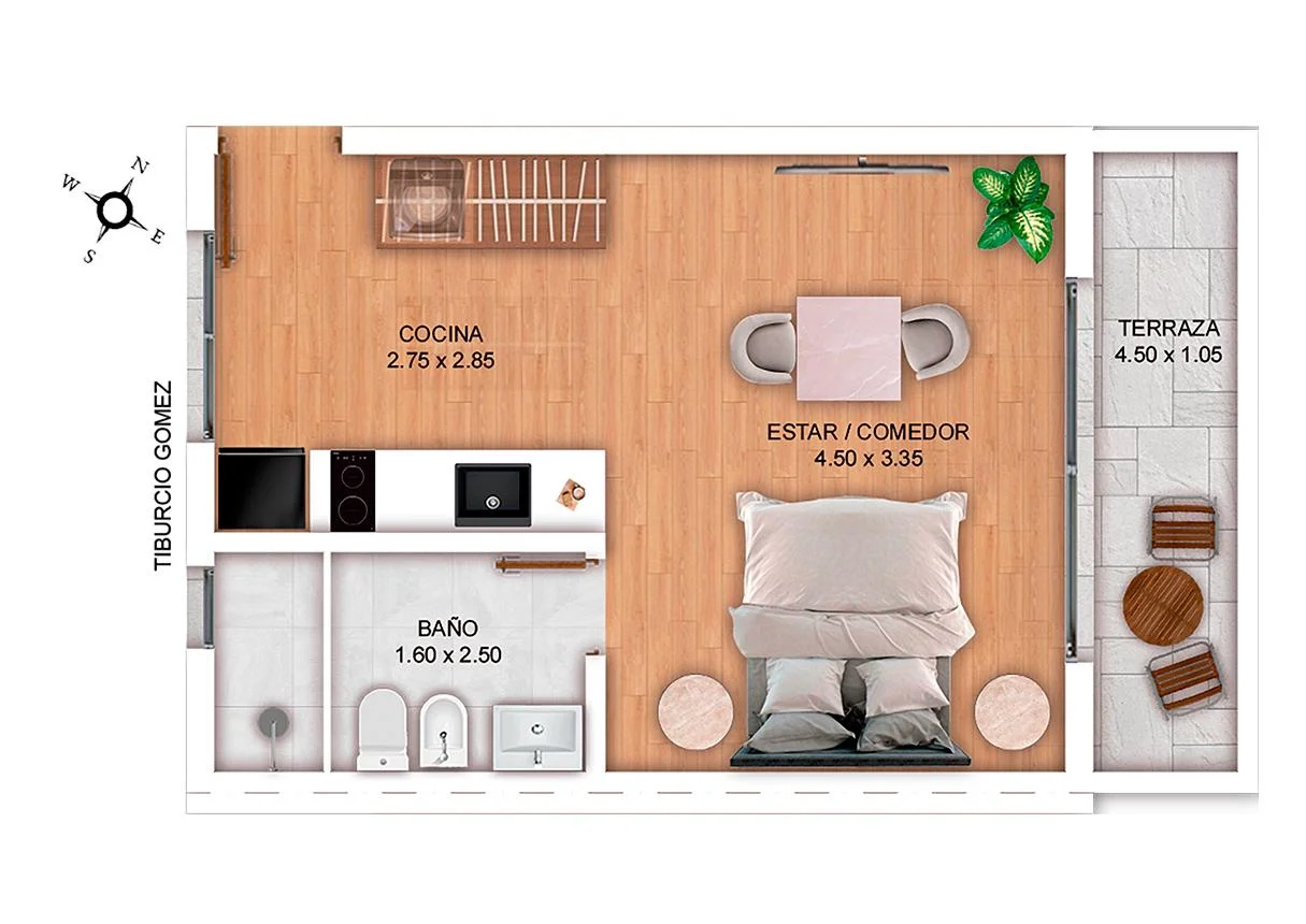 Monoambientes: Diseñados para maximizar el espacio y la funcionalidad, ideales para profesionales o como inversión.