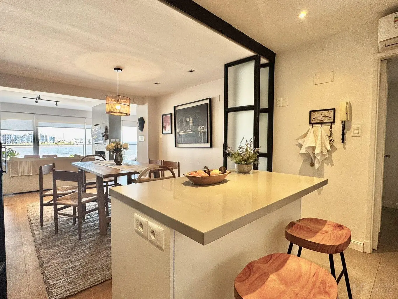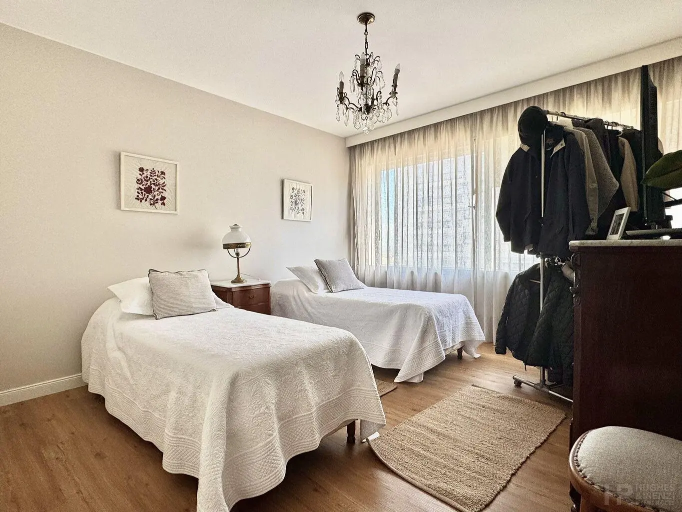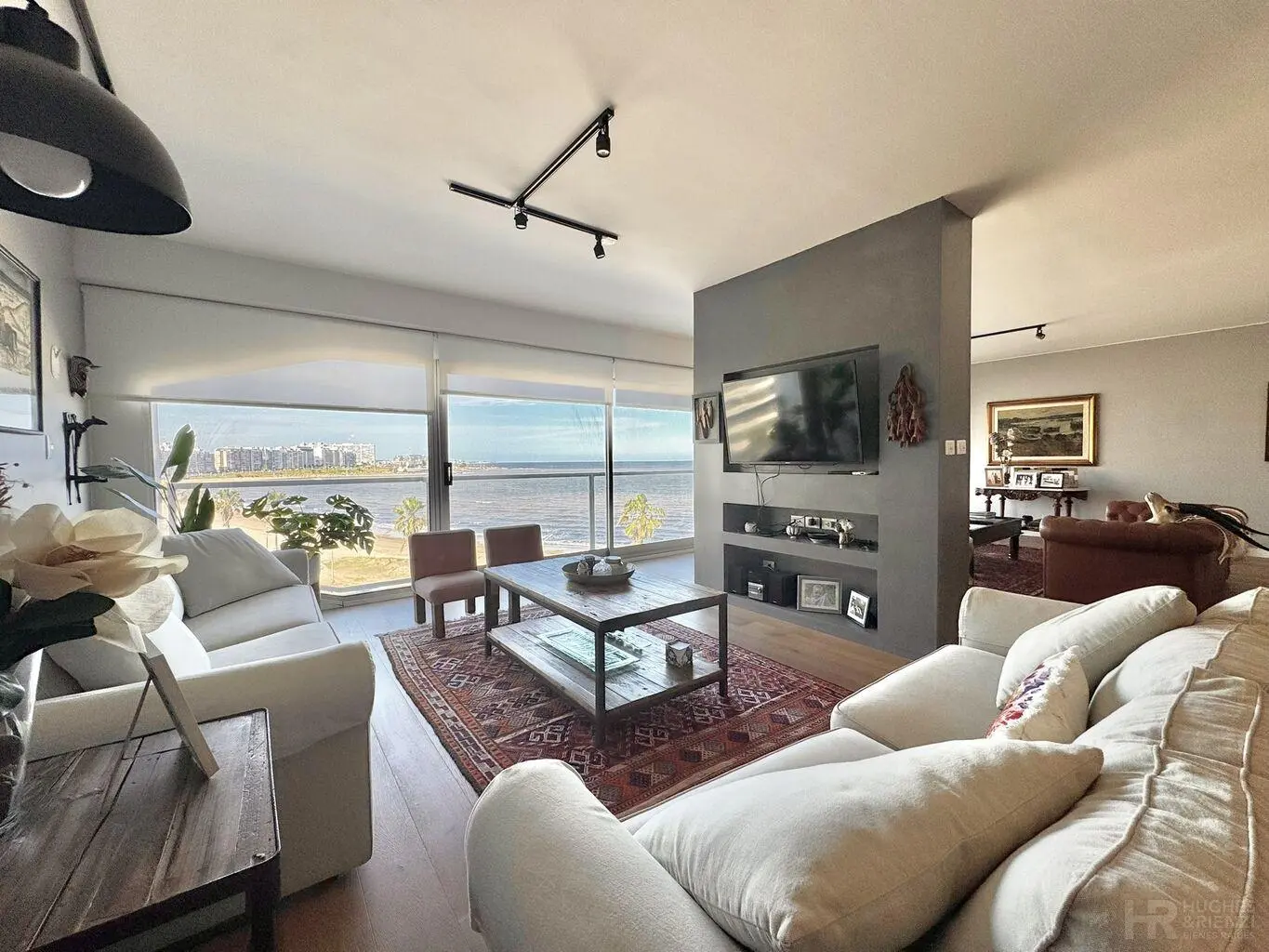 Espectacular apartamento con vista panorámica a la Rambla; todo actualizado, para entrar. 1 apartamento por piso. Hall de entrada, gran living comedor y estar. Cocina integrada por puerta de hierro y vidrio. Servicio completo y baño social. 4 dormitorios y 2 baños completos. Garaje doble y box. Calefacción central. Portería virtual 24 hs. y portero presencial con horario.