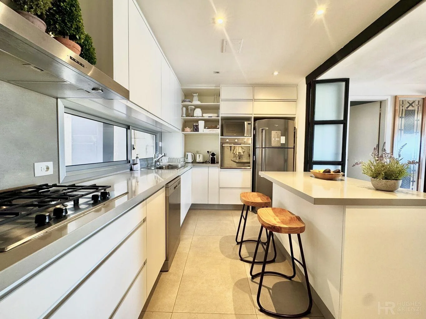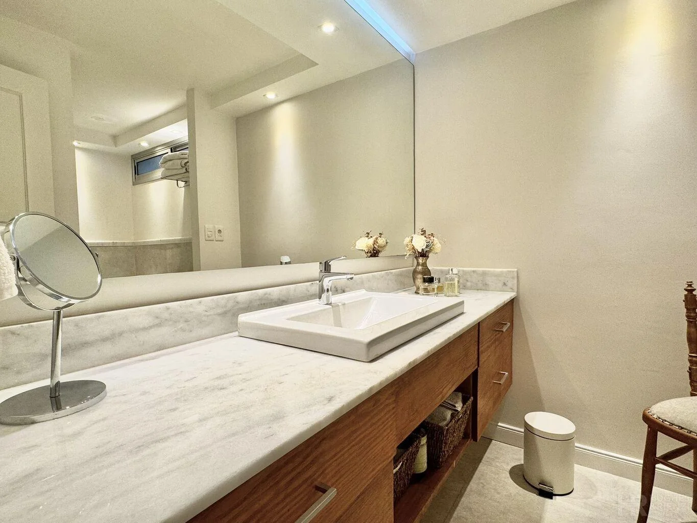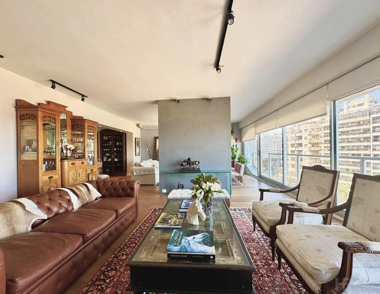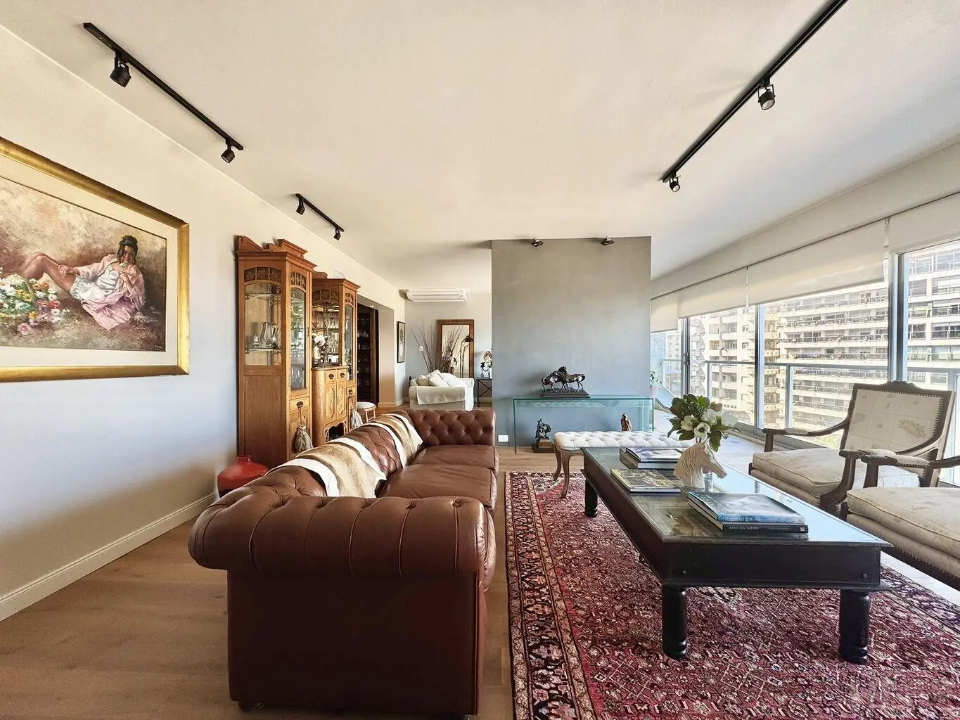 Espectacular apartamento con vista panorámica a la Rambla; todo actualizado, para entrar. 1 apartamento por piso. Hall de entrada, gran living comedor y estar. Cocina integrada por puerta de hierro y vidrio. Servicio completo y baño social. 4 dormitorios y 2 baños completos. Garaje doble y box. Calefacción central. Portería virtual 24 hs. y portero presencial con horario.