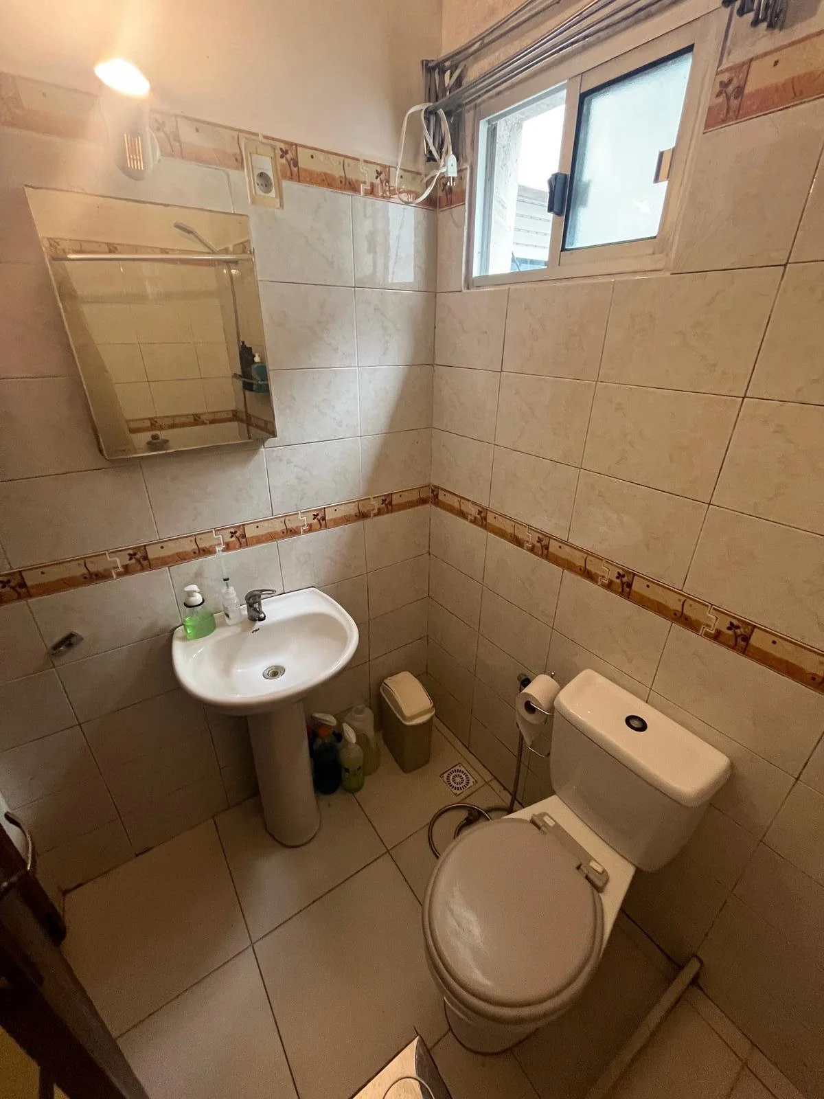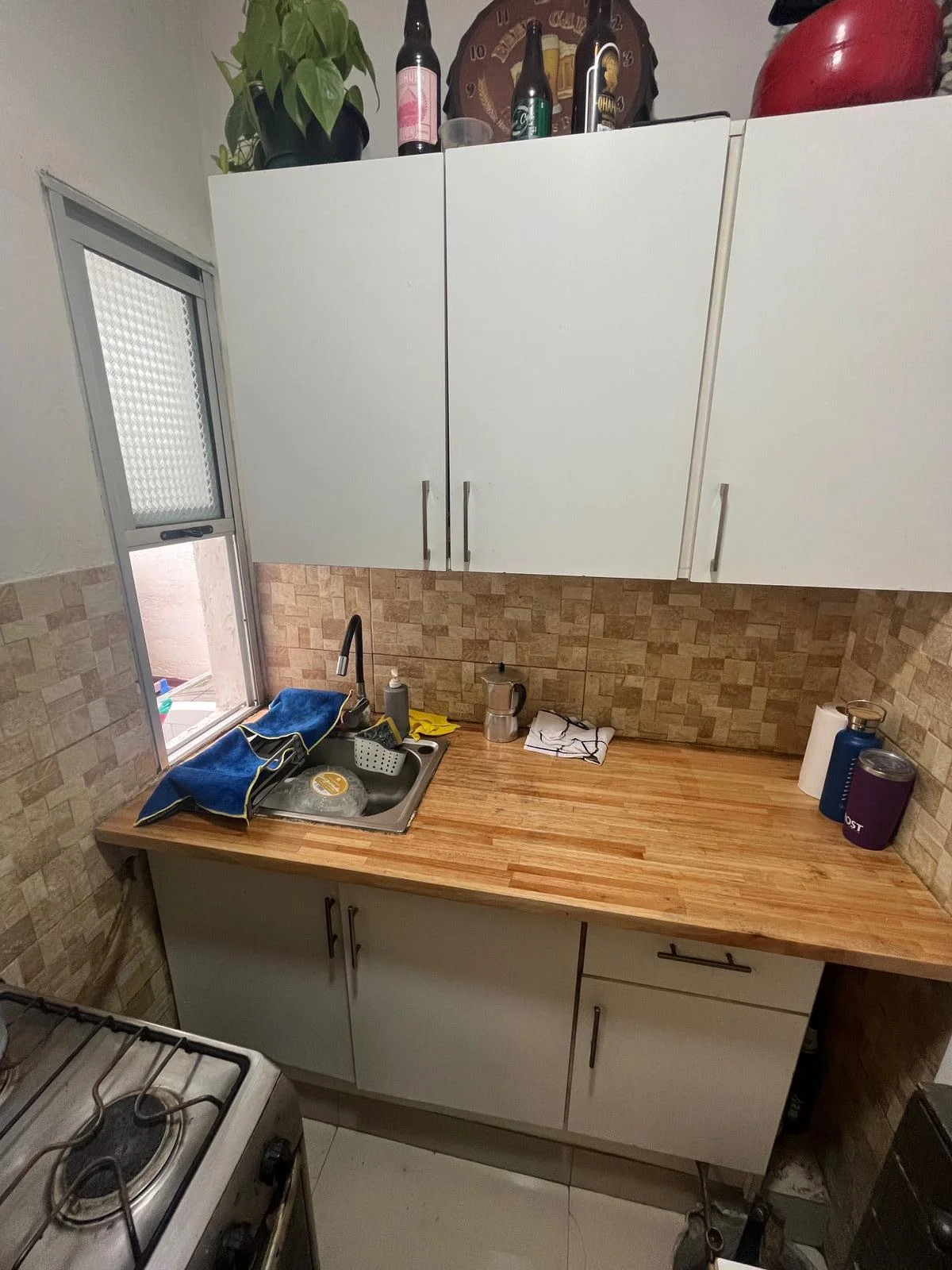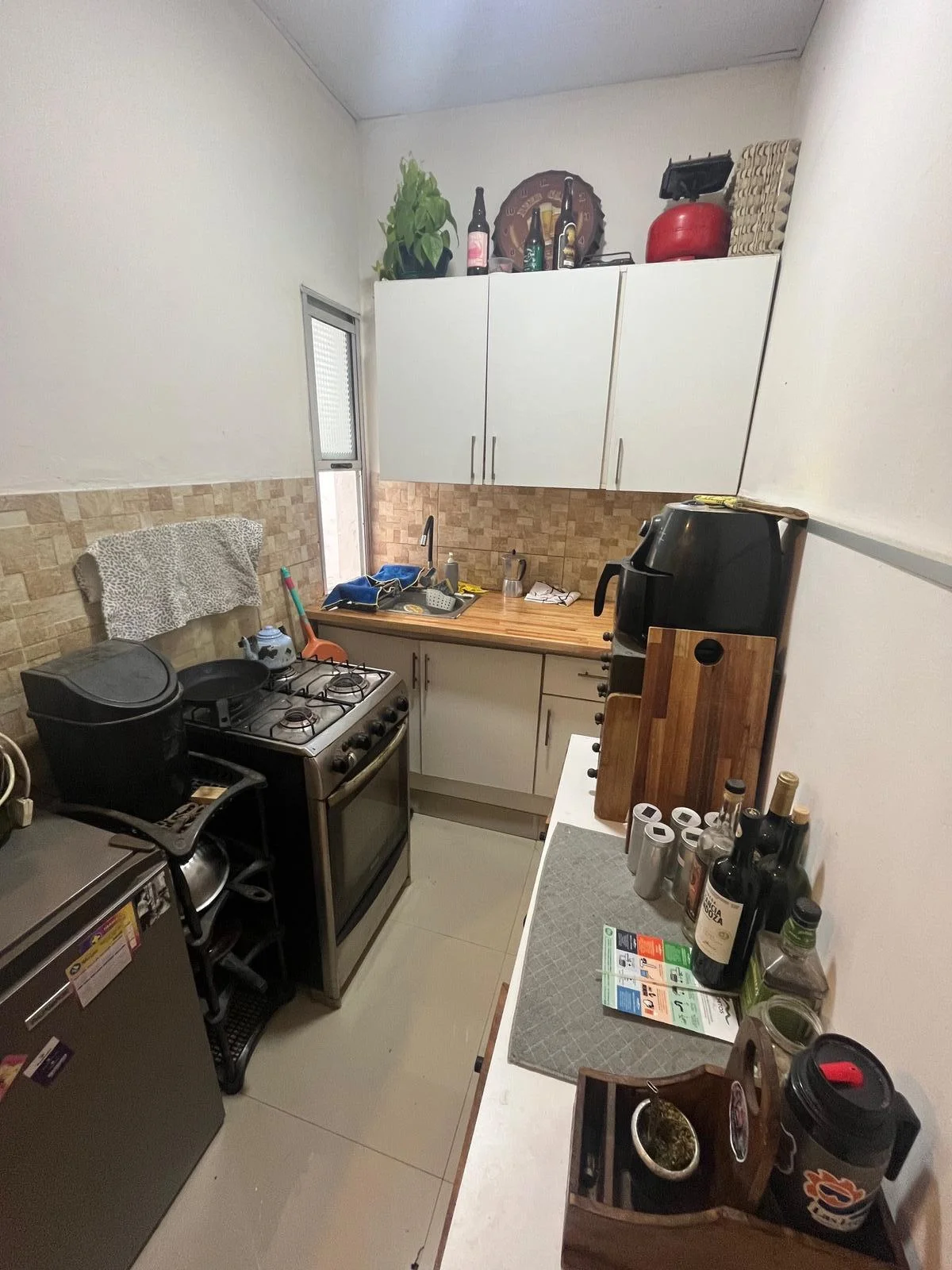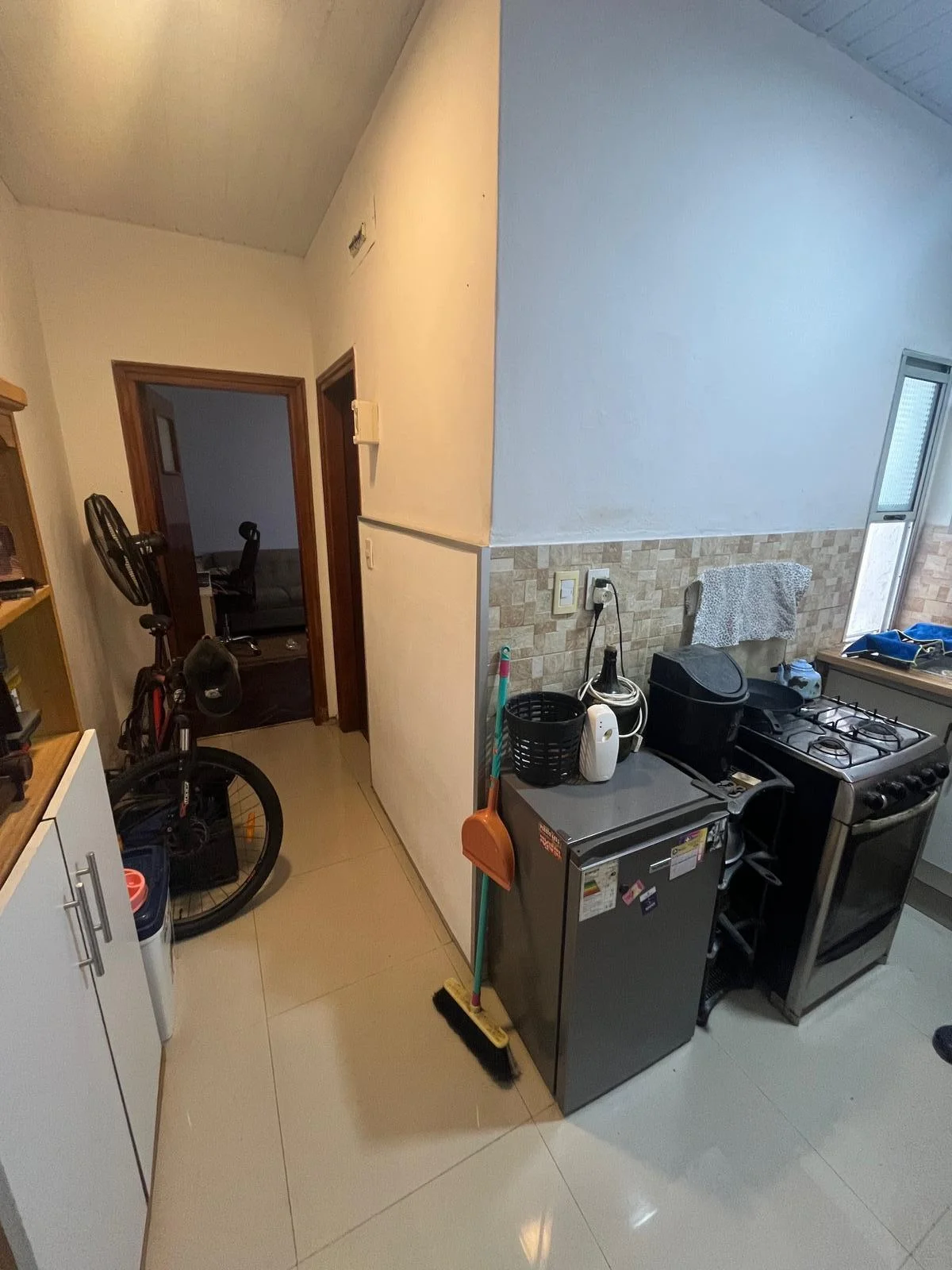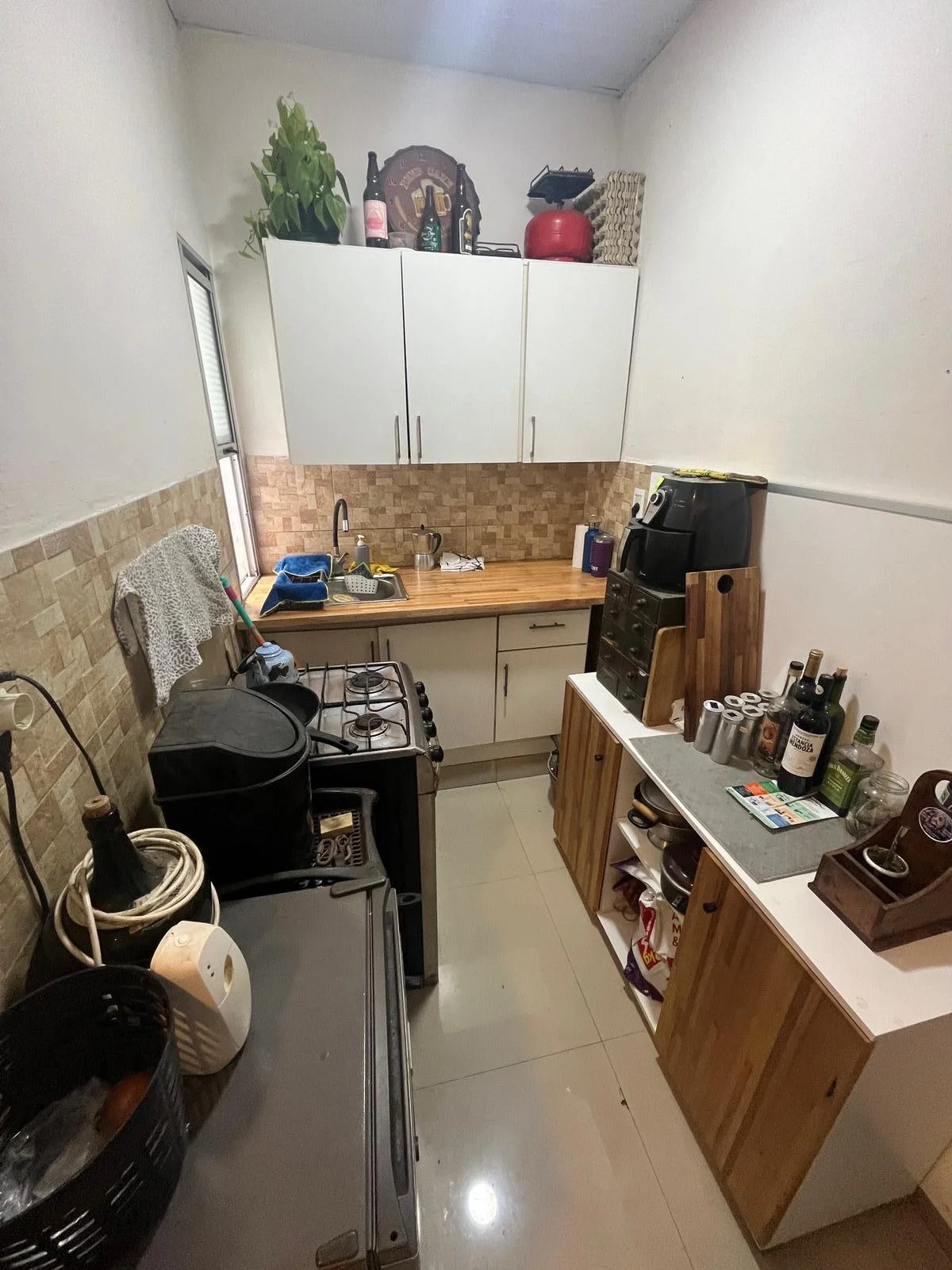 Cocina con mueble aéreo y bajo mesada, baño completo.