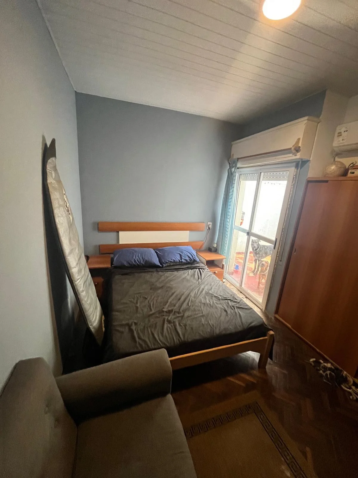 Amplio dormitorio con salida a patio de 4m2. Pisos de parquet y Aire acondicionado en dormitorio.