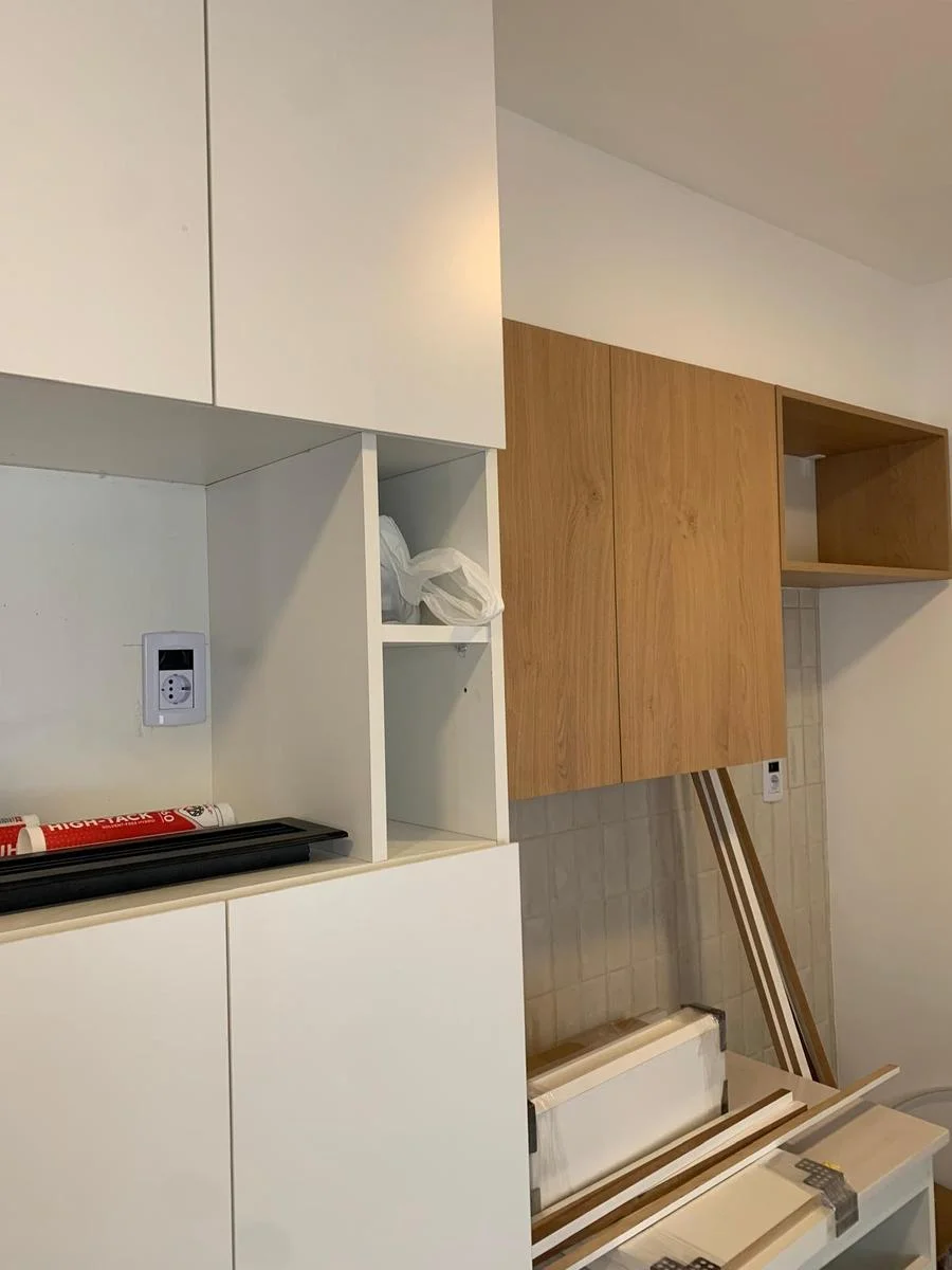 Cocina semi integrada, con armarios en bajo mesada y placar para lugar de guardado.