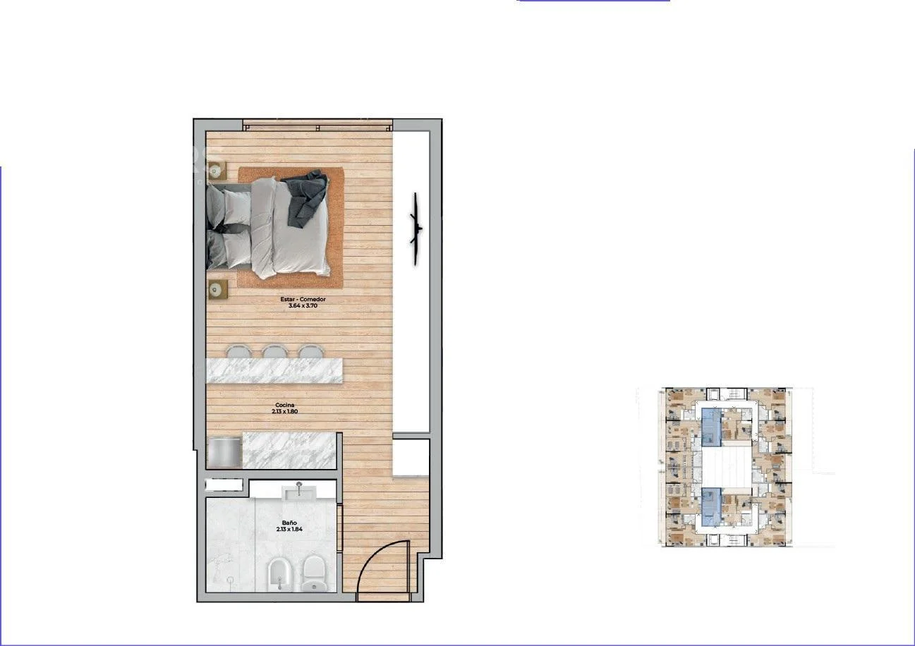 Apartamento monoambiente en venta en Pocitos Nuevo.