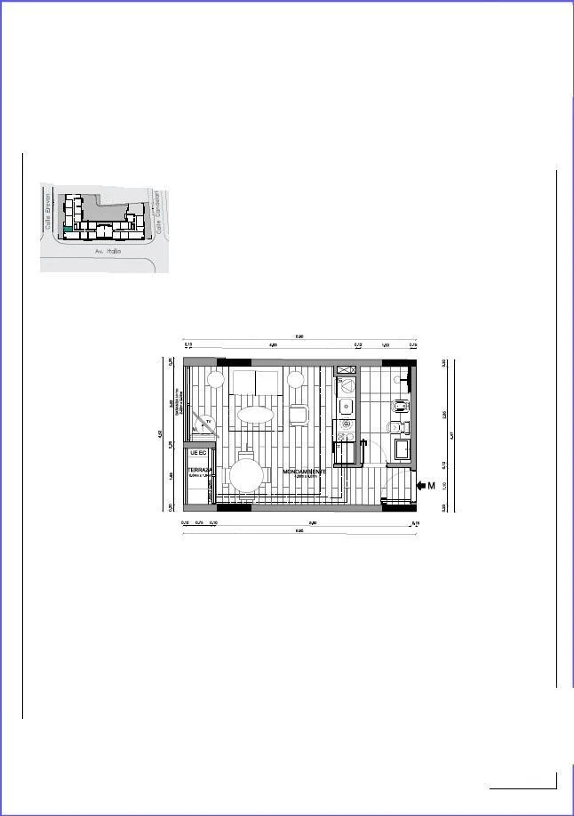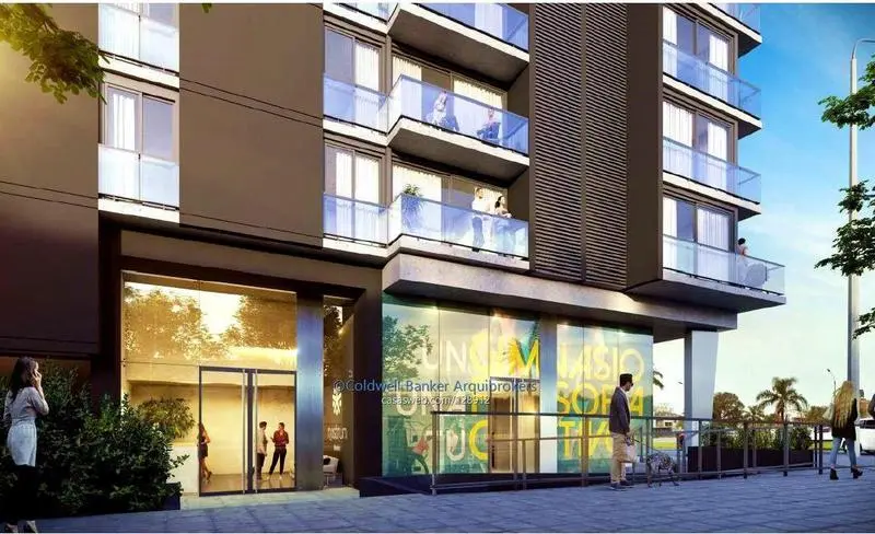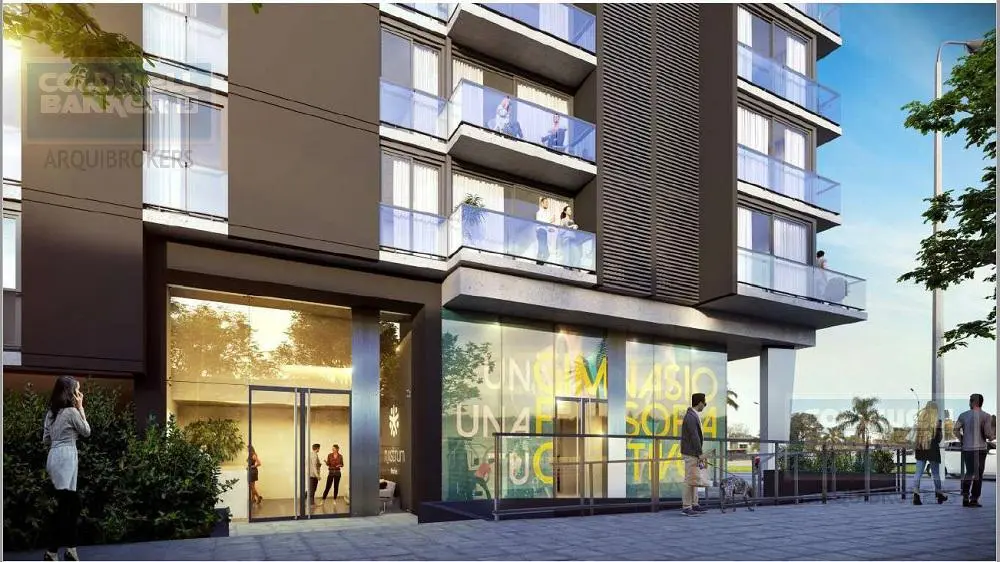 Monoambiente con cocina integrada con placares sobre y bajo mesada, terraza al frente, 1 baño. Contará con aire aire acondicionado, previsión para conexión de campana y de lavarropas. aberturas de aluminio con cortina de enrollar.