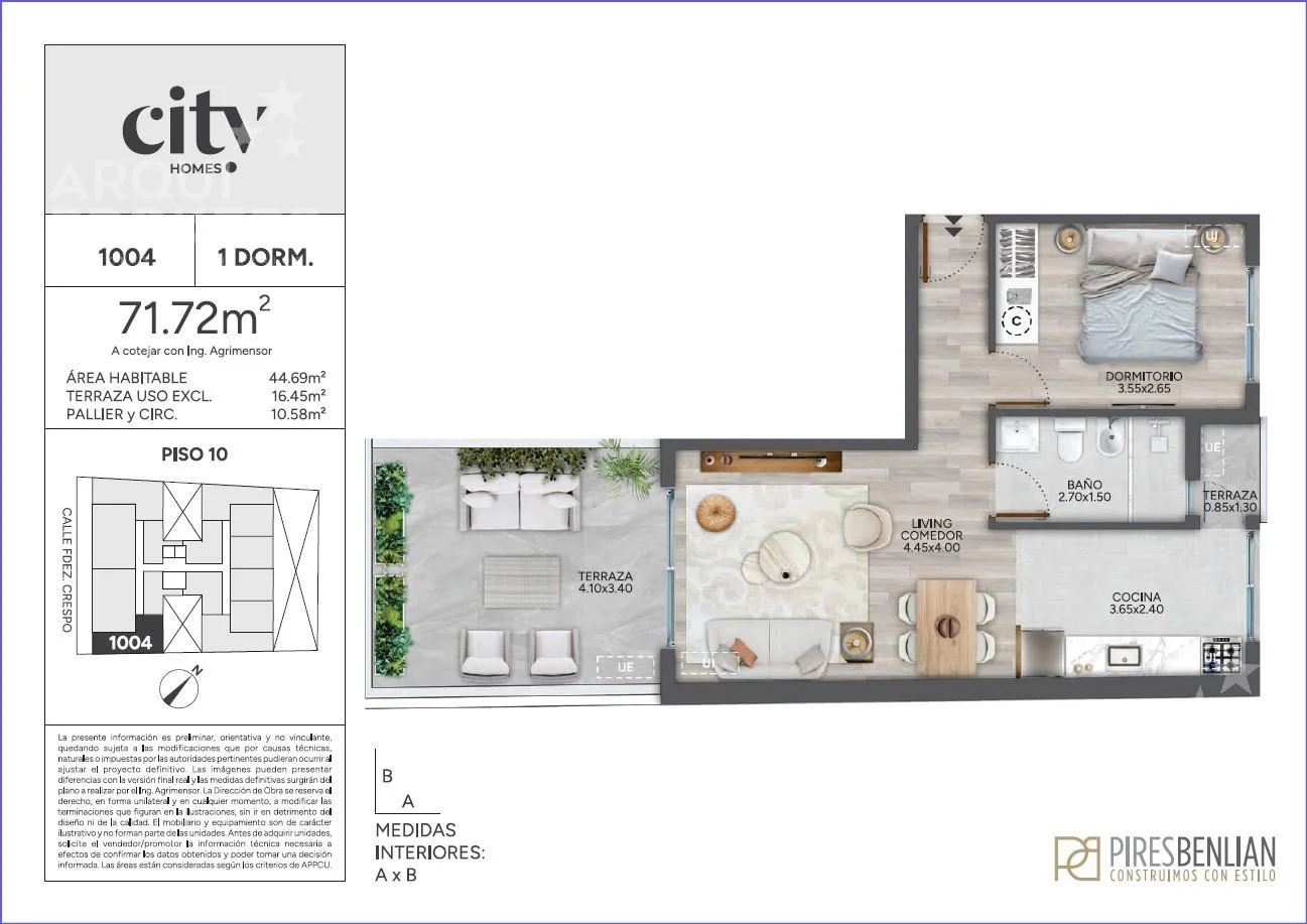 Penthouse en piso 10 al frente con orientación suroeste.