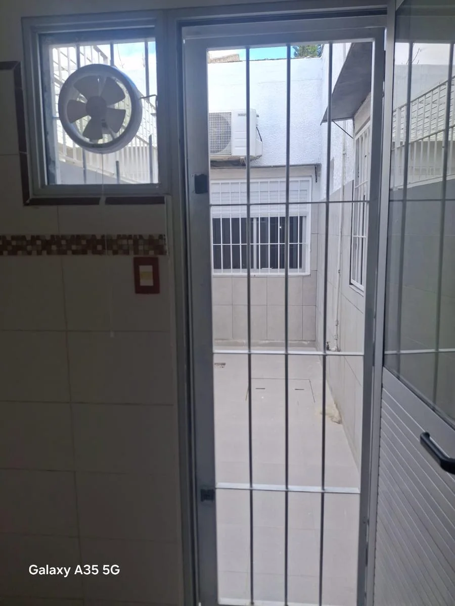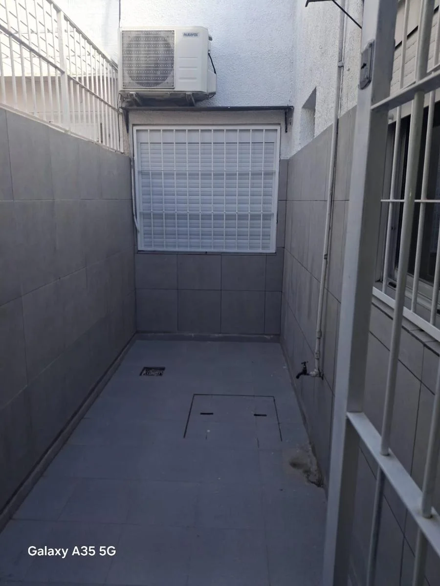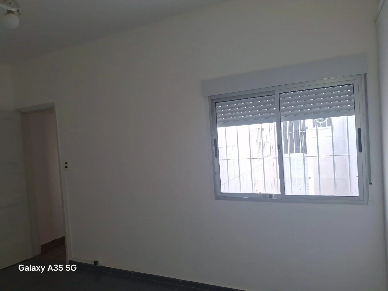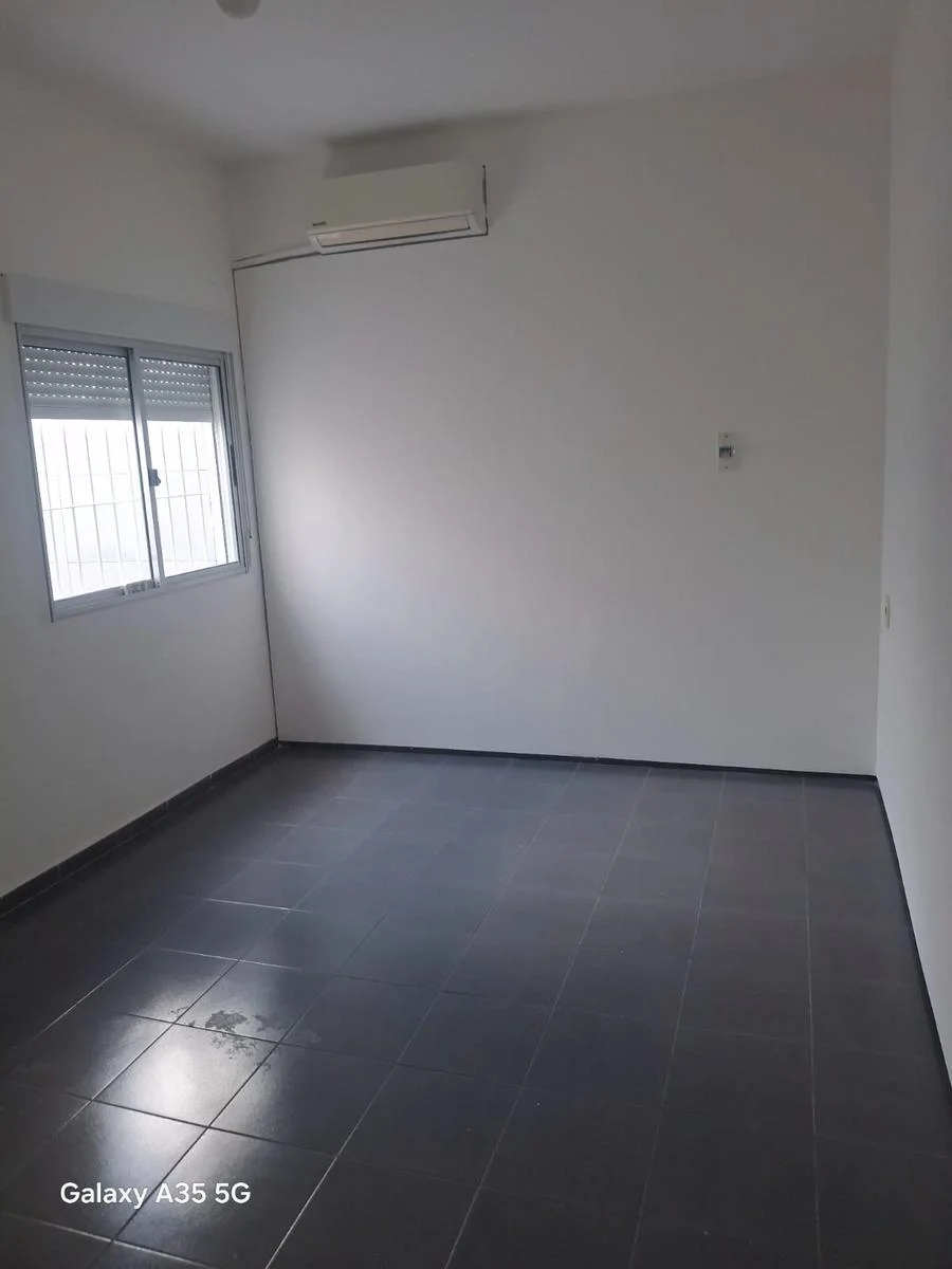 Living comedor amplio con ventana con persiana y reja y aire acondicionado.