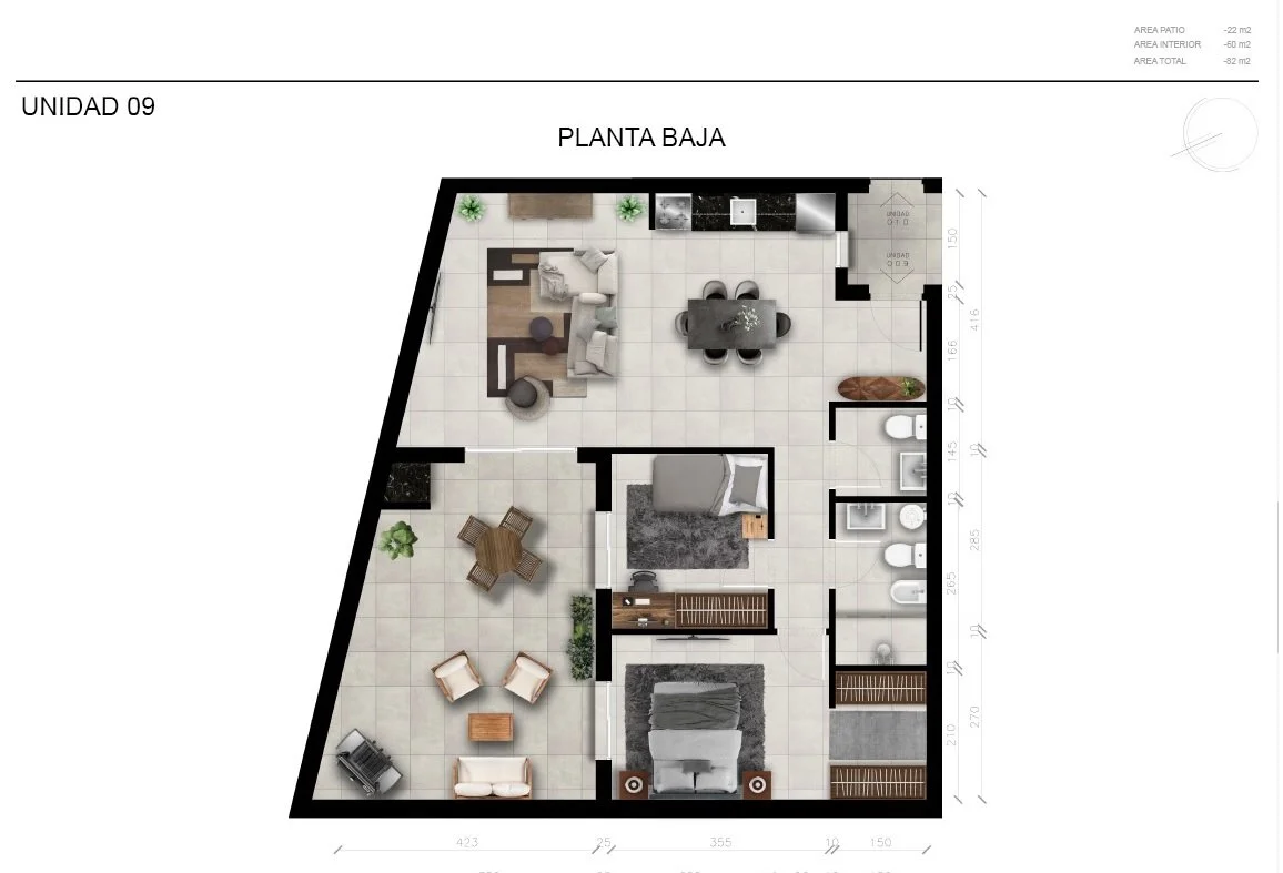 oUnidades 02, 07 y 08: Dúplex con patio frontal.
