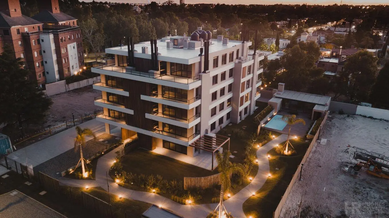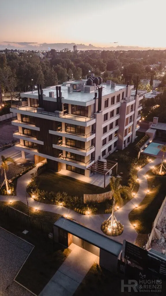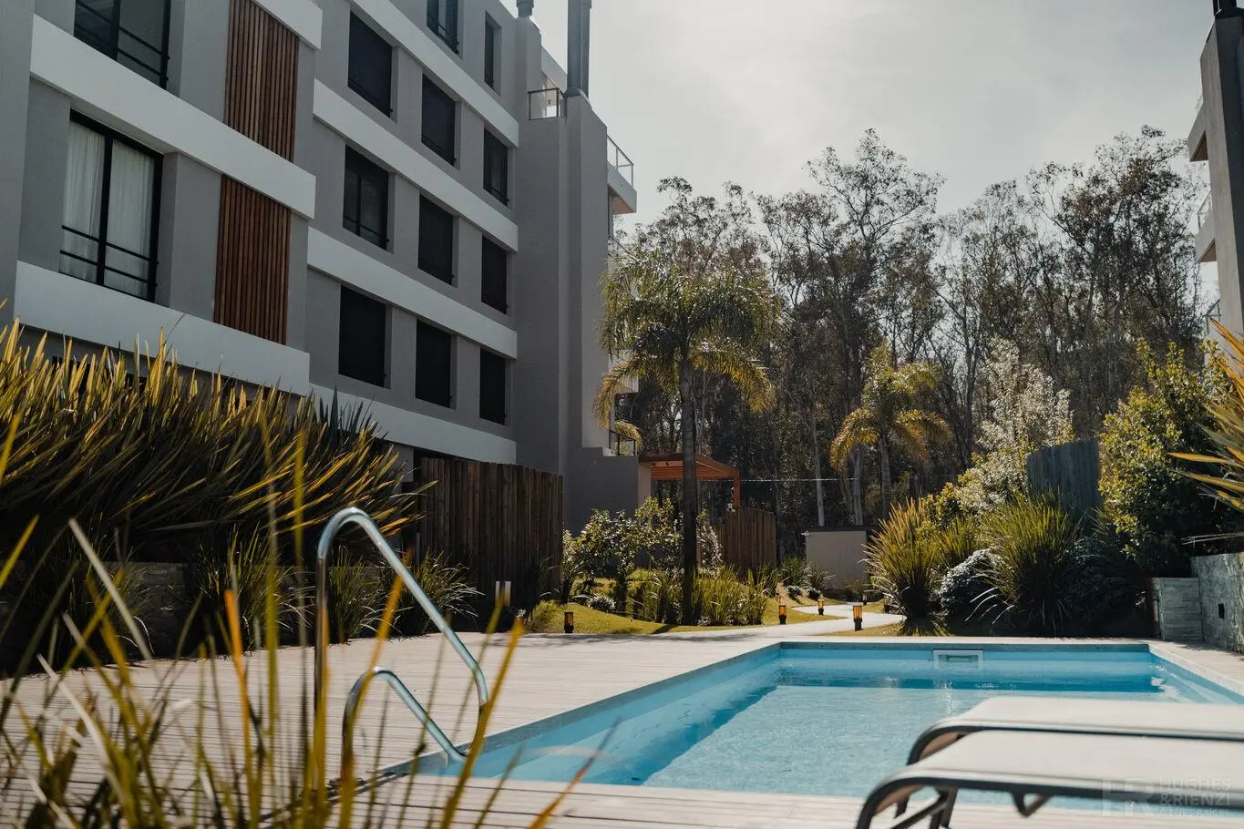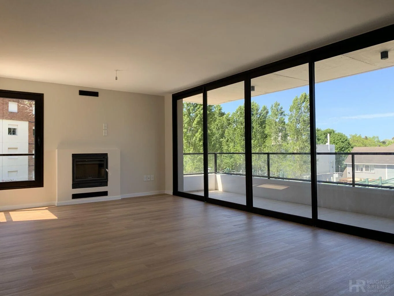 Parque Madero. Living-comedor con estufa a leña, cocina integrada con terraza lavadero. Terraza con parrillero. 2 dormitorios y 2 baños, principal en suite con vestidor. Cochera para un auto. Seguridad 24hs y portería con horario. Piscina y barbacoa.