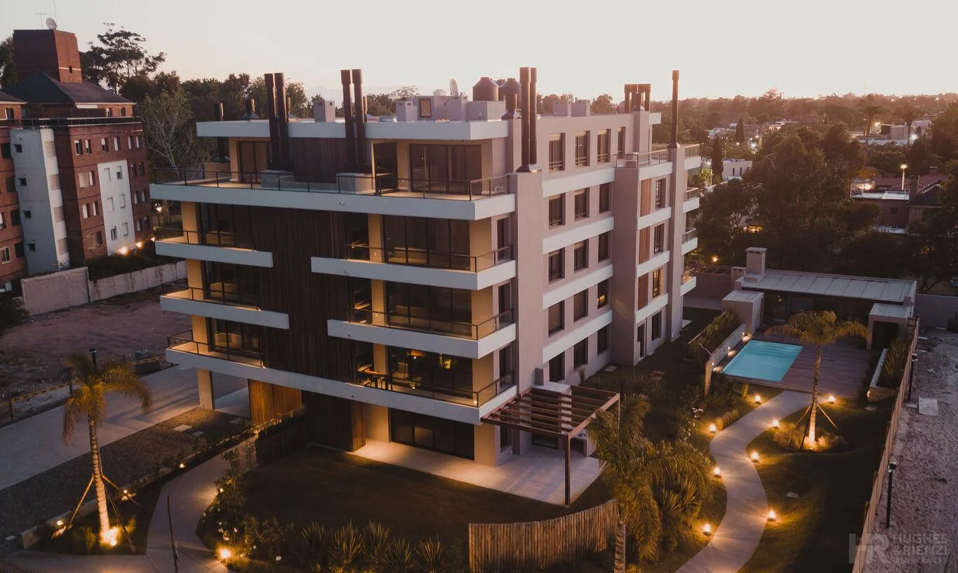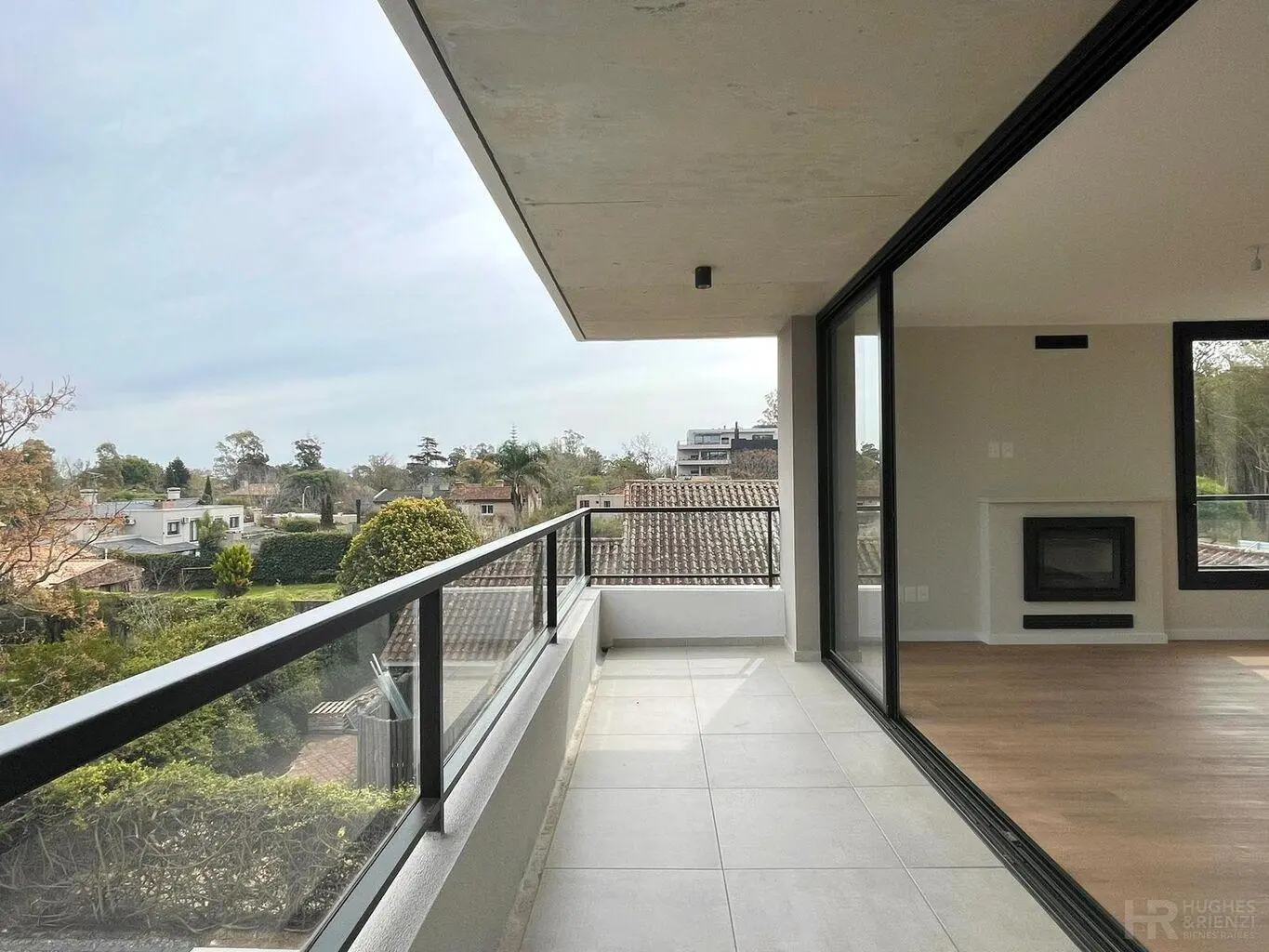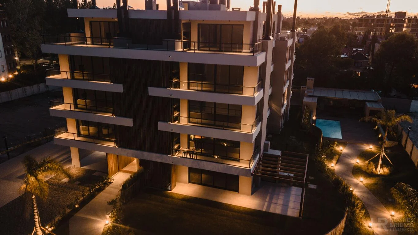 Parque Madero. Living-comedor con estufa a leña, cocina integrada con terraza lavadero. Terraza con parrillero. 2 dormitorios y 2 baños, principal en suite con vestidor. Cochera para un auto. Seguridad 24hs y portería con horario. Piscina y barbacoa.