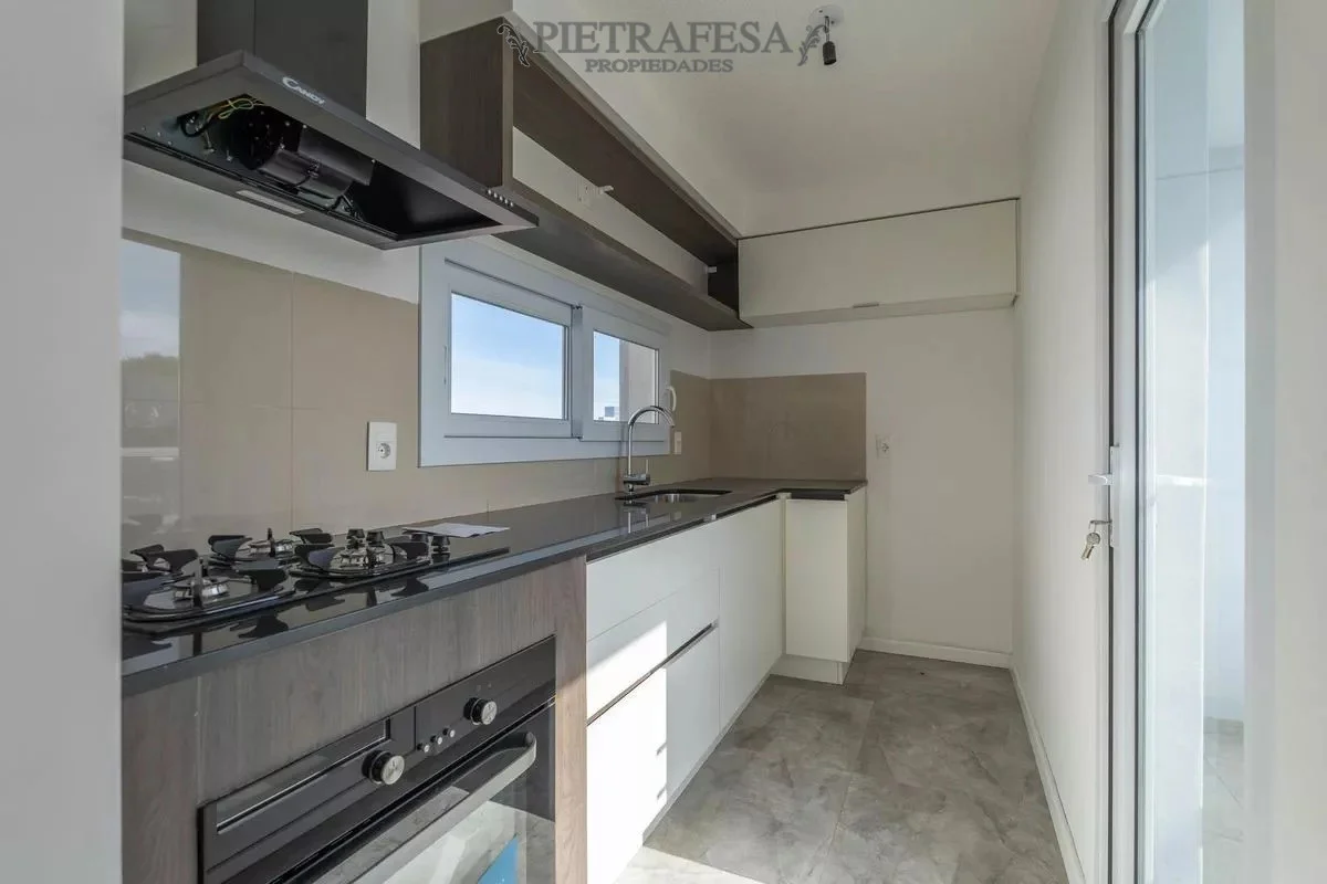 Cocina definida equipada con placares, anafe y horno de empotrar eléctrico.