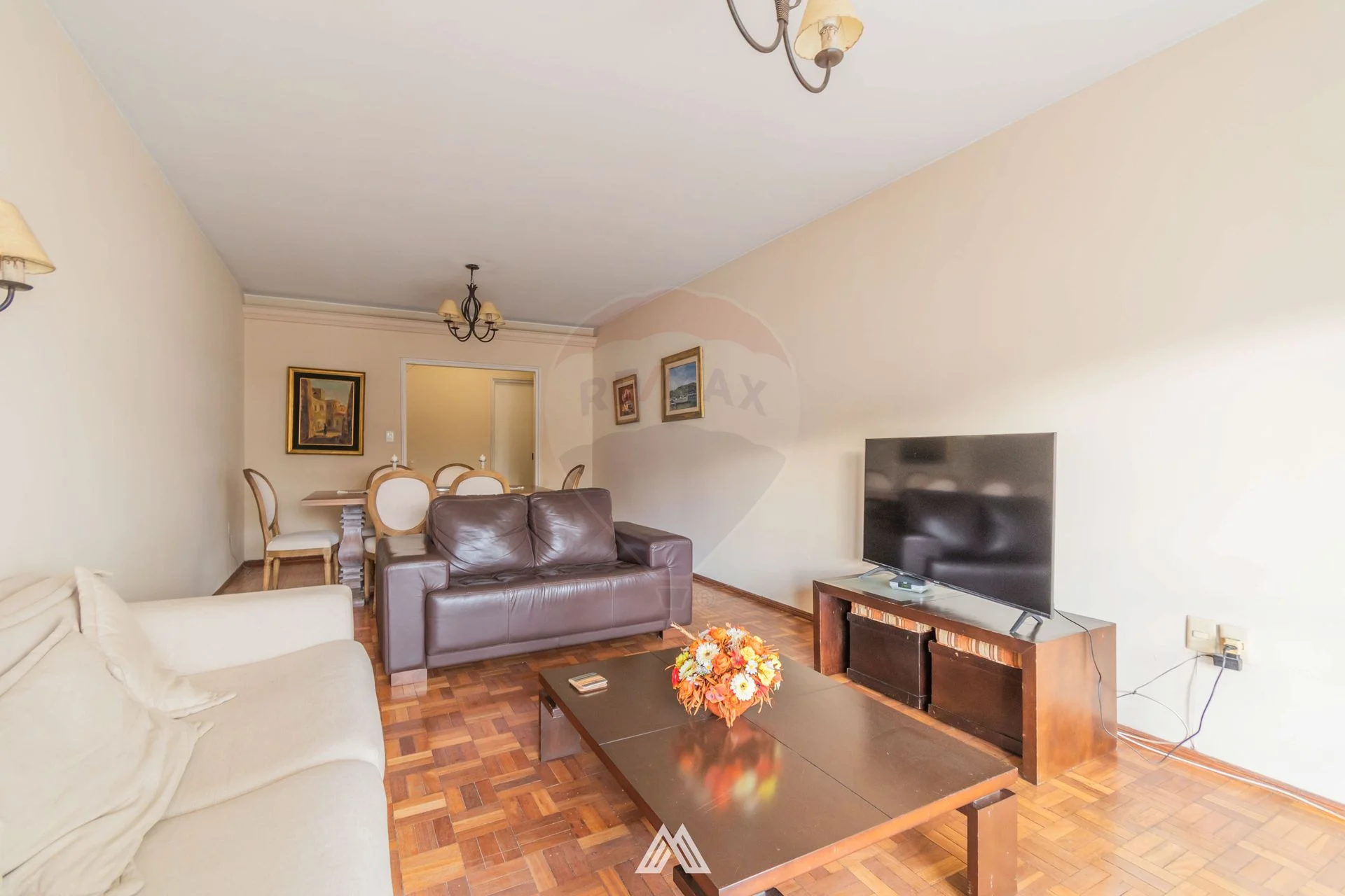 Amplio living comedor con salida a balcón, el ancho del balcón abarca lo que es living y también el dormitorio principal.